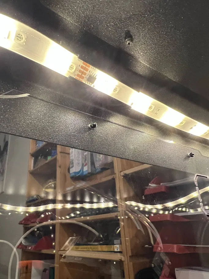 Chi tiết vỏ bọc/giá đỡ LED strip dùng cho enclosure Prusa MK4S. Lắp bằng rivet có sẵn trong bộ kit enclosure của Prusa, giúp cố định LED strip gọn gàng và chắc chắn.