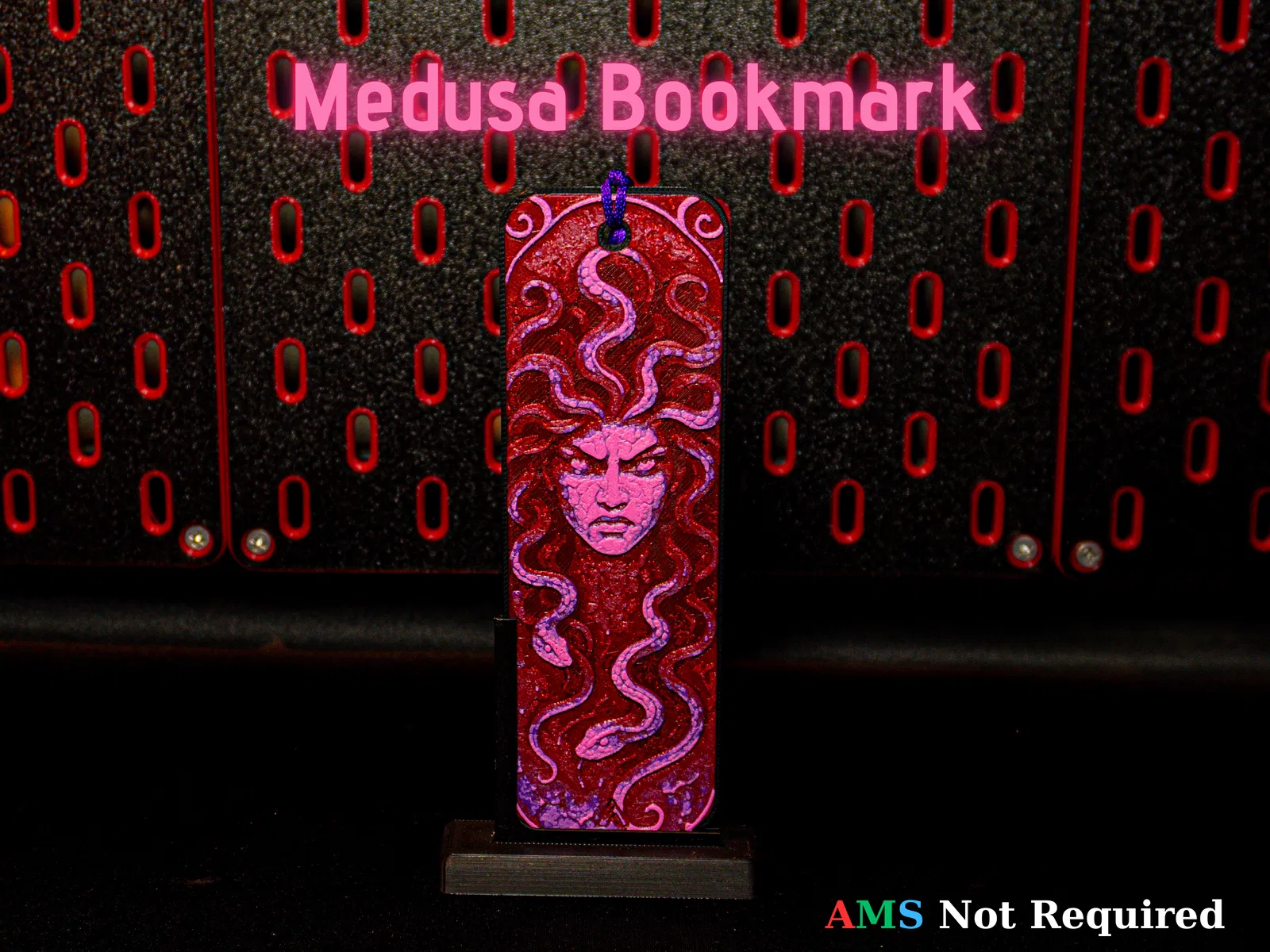 Bookmark Medusa - Hueforge với mái tóc rắn uốn lượn theo ánh sáng, vừa quyến rũ vừa rợn người. Có sẵn khuyến nghị in 100% infill và hướng dẫn swap màu theo từng layer để ra hiệu ứng Hueforge đẹp.