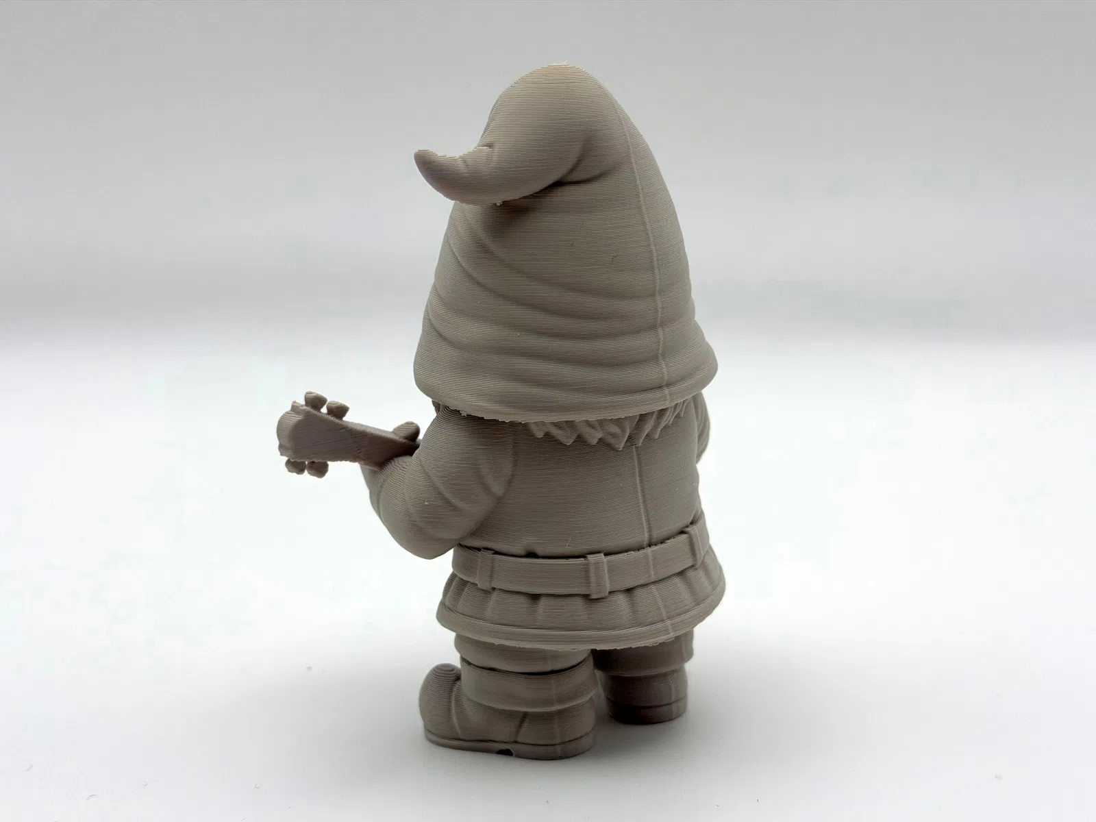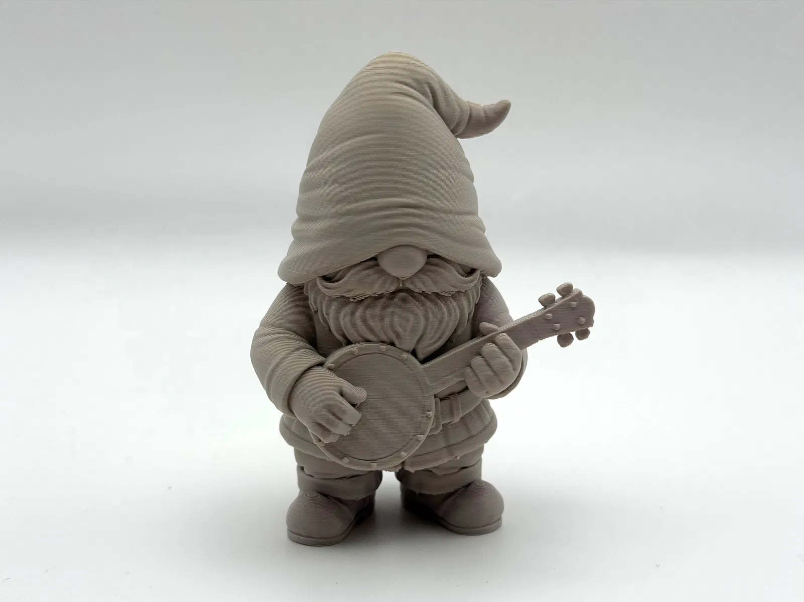 Gặp gỡ Banjo Garden Gnome – chú lùn vườn râu ria lúc nào cũng sẵn sàng gảy banjo. Mẫu in cần ít support; dùng organic-style supports và chỉnh Z-top height để gỡ support nhẹ nhàng, sạch sẽ.