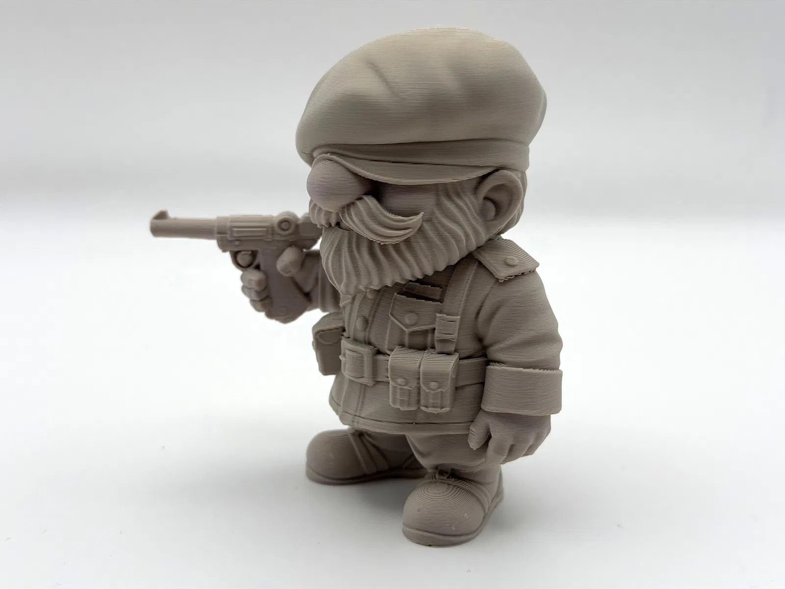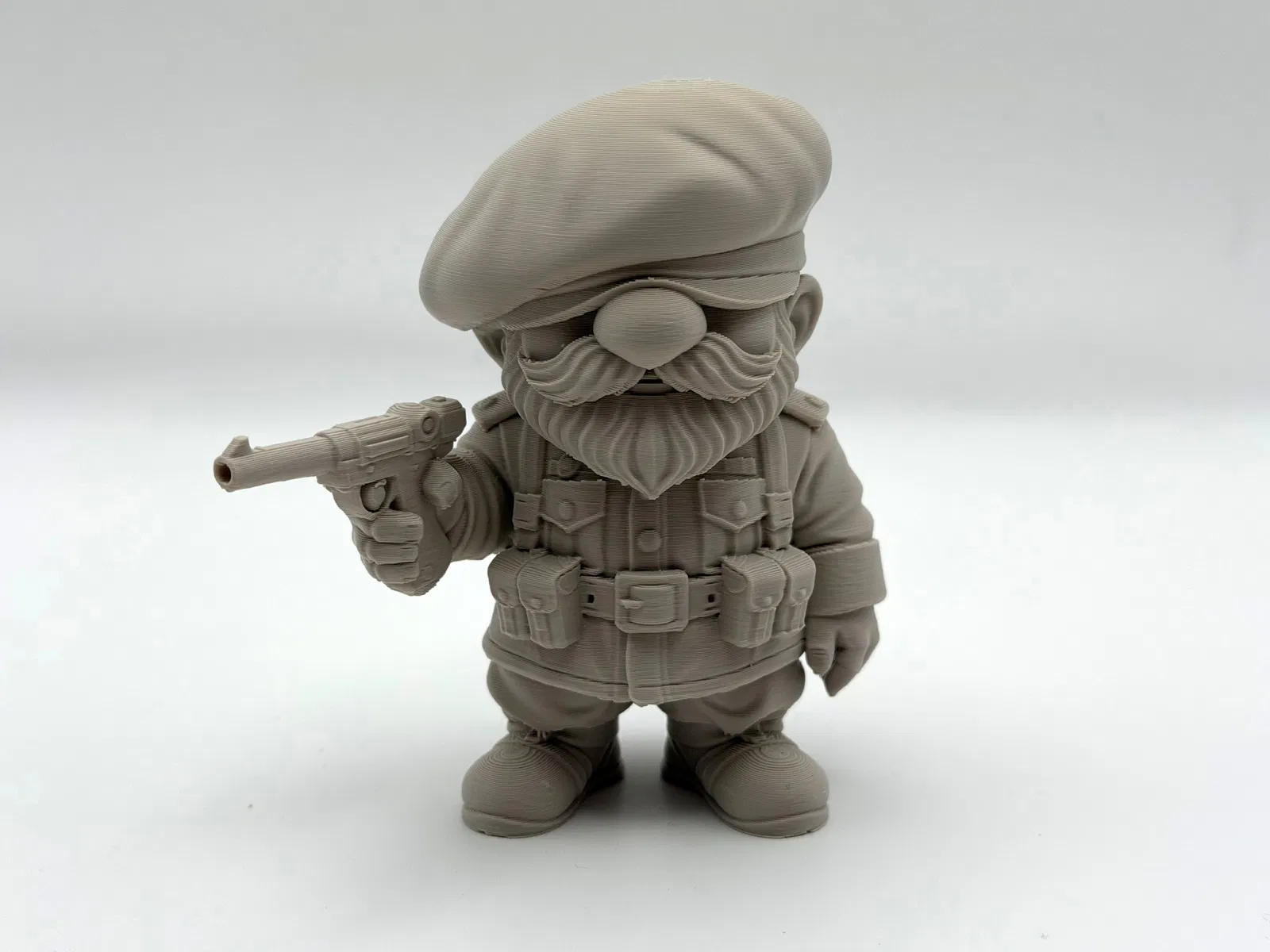 Luger Garden Gnome là mẫu gnome “tác chiến” siêu ngầu cho sân vườn: đội beret to, mặc quân phục cổ điển và cầm súng lục Luger. In 3D cần ít supports; supports organic dễ bóc, chỉnh Z-top height để tháo gọn hơn.