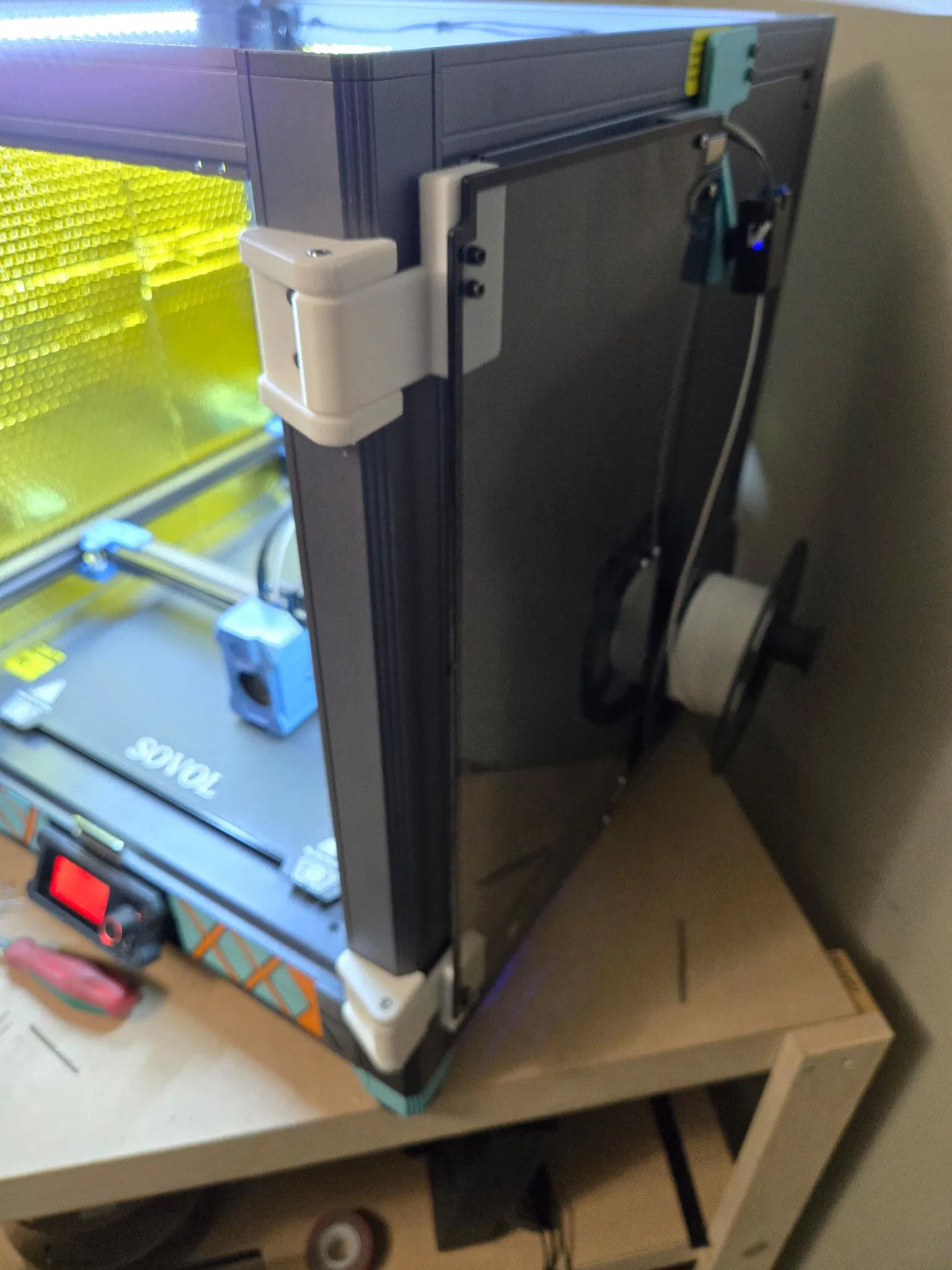 Step 2 - Dùng nam châm để giữ tấm panel đúng vị trí, rồi gắn cửa vào máy in.