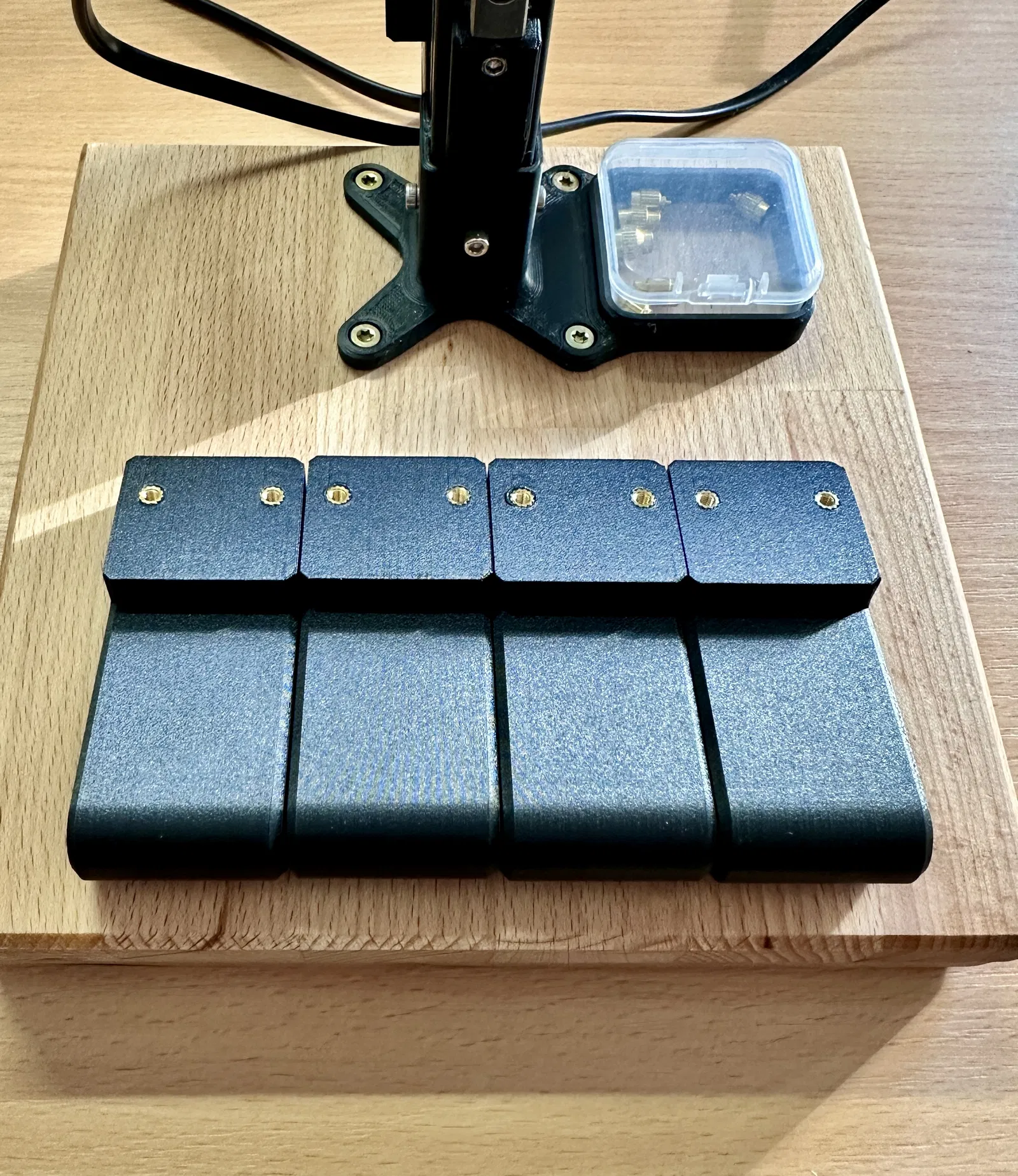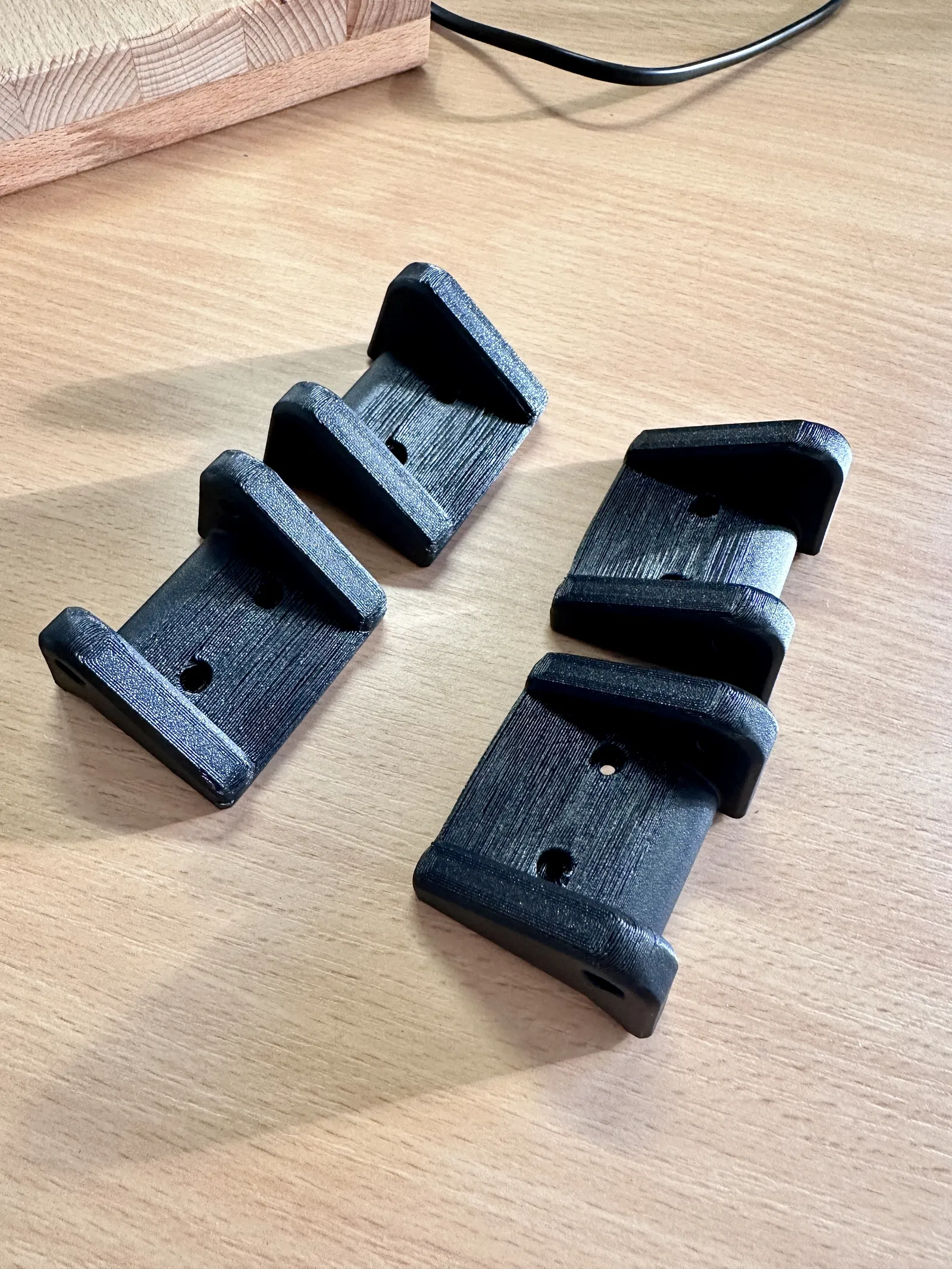 Hơ nóng và ép các m3 heatset inserts vào bản lề, mỗi bản lề cần 4 cái.