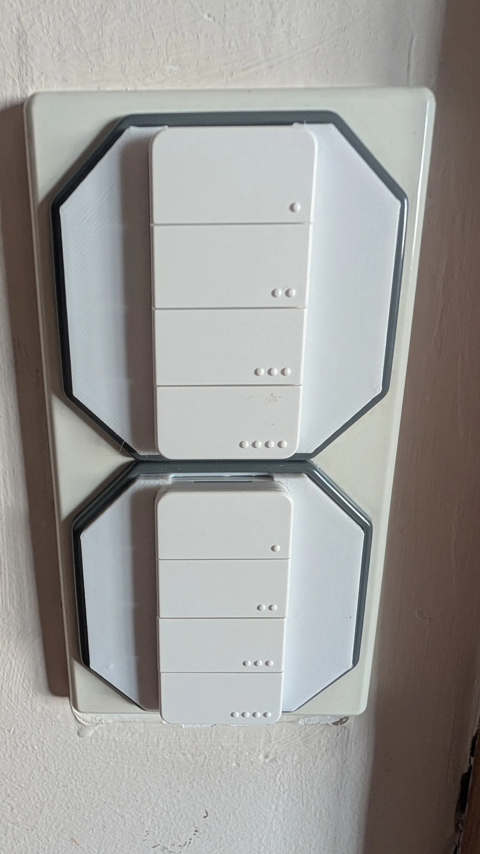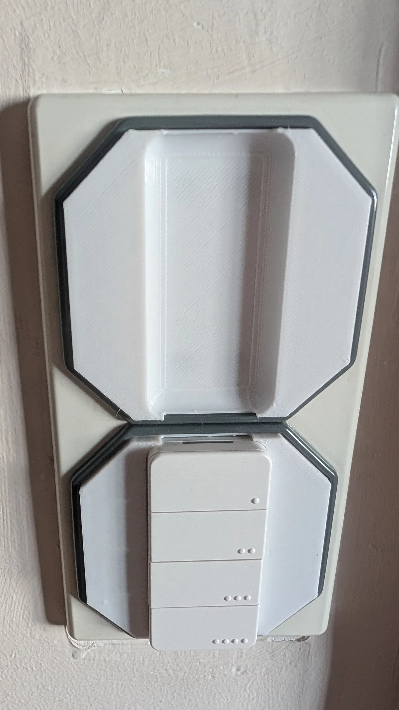 Là fan của hệ công tắc Merten OctoColor nên mình muốn tìm cách kết nối nó với SmartHome. Ứng dụng: giá treo tường cho Shelly BLU RC (remote 4 nút). Có thể dùng trực tiếp như một công tắc gắn tường hoặc tháo ra tiện cầm dùng khi ngồi trên couch.