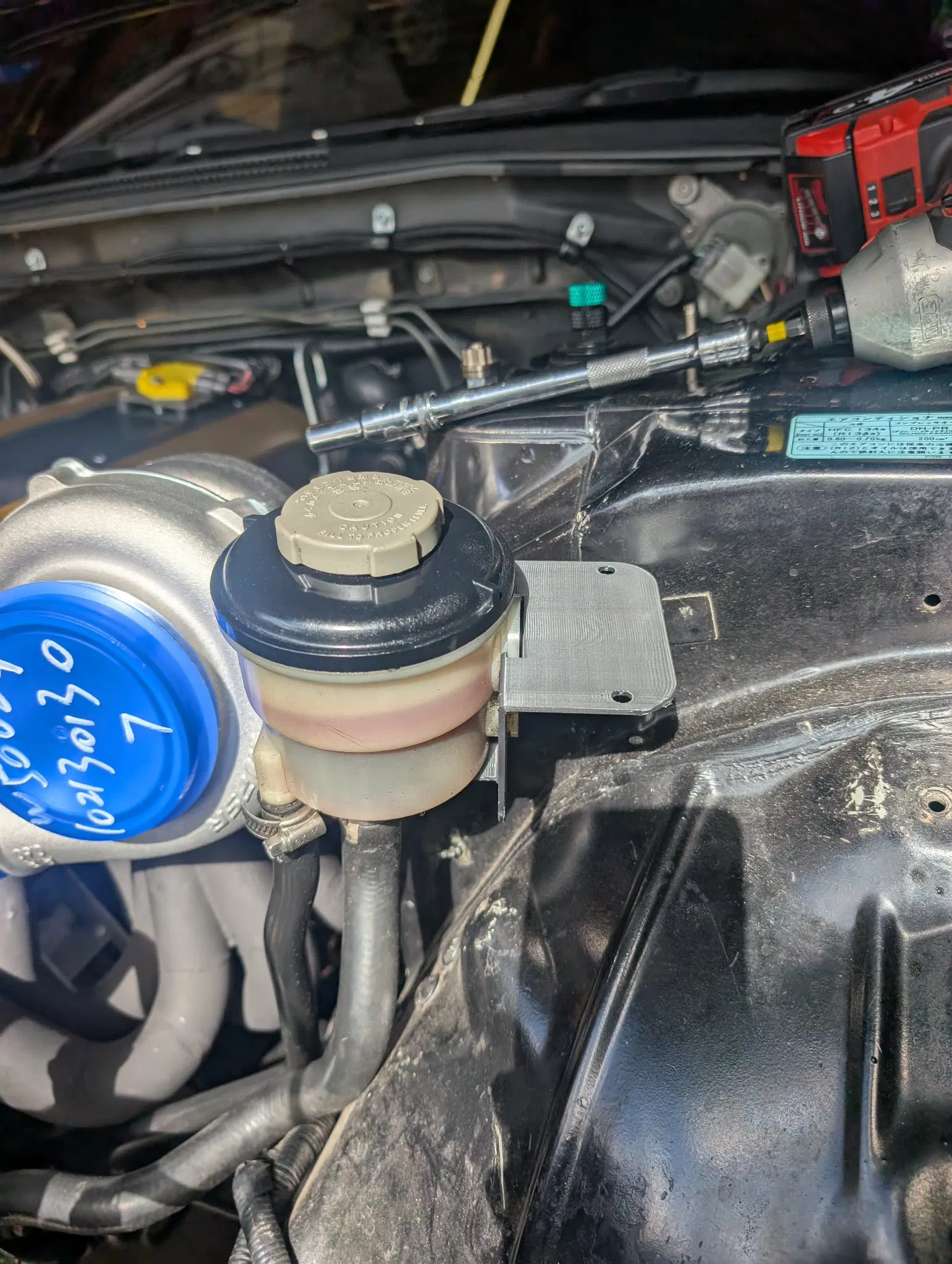 Mình cần dời bình chứa trợ lực lái (P/S Reservoir) sau khi lắp turbo lớn hơn, nên mình thiết kế bộ này để tận dụng bình zin, nhưng chuyển sang gắn ở vị trí của charcoal canister.