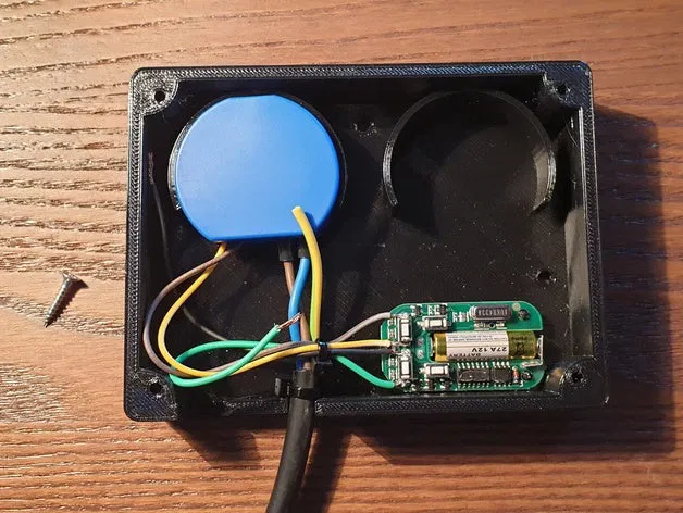 Hộp để gắn 2 Shelly Smart Switch và một thẻ điều khiển remote nhỏ. Mình in với layer height 0.3 mm bằng Prusament PETG vì với dự án này không cần đẹp, quan trọng là độ bền và chắc chắn.