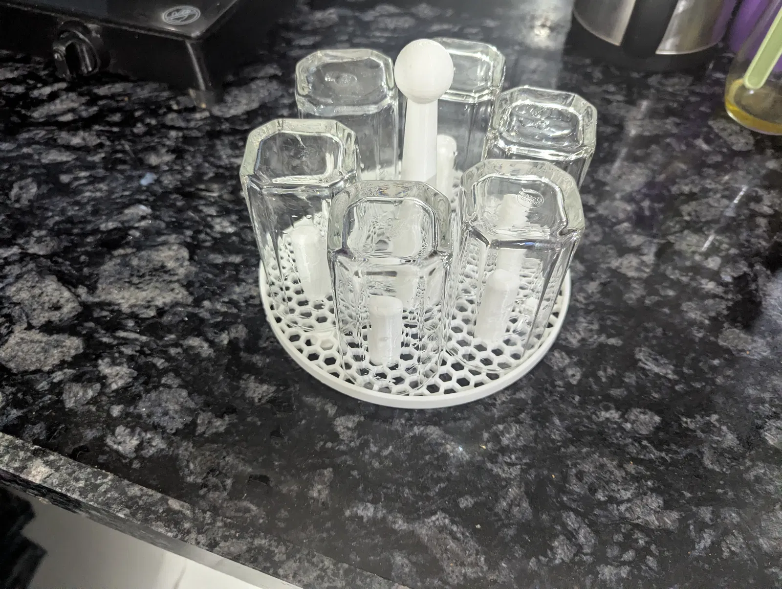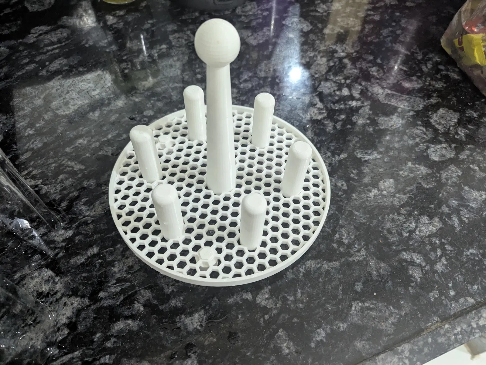 Giá phơi dùng để hong khô tối đa 6 ly uống nước sau khi rửa. Thiết kế gọn gàng, giúp ly ráo nước nhanh và giữ khu vực bếp ngăn nắp; in 3D dễ dàng với layer height khuyến nghị cho thân và chân snap-fit.