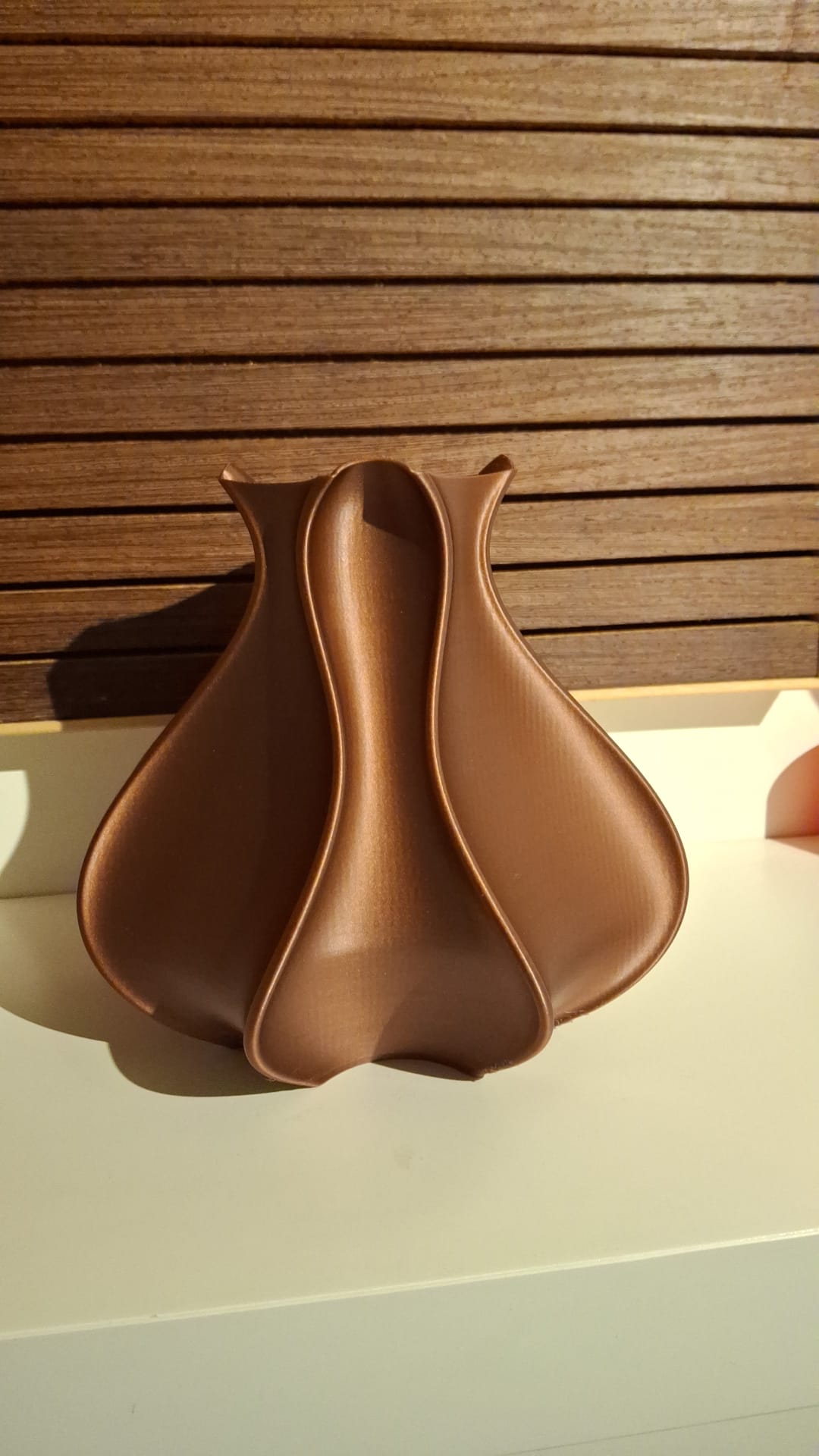 Bình hoa Tulip trang trí, in đẹp với PETG Extrudr màu đồng. Khuyến nghị bật supports vì phần overhang ở đáy khá dốc, giúp bản in ổn định và giảm lỗi khi in.