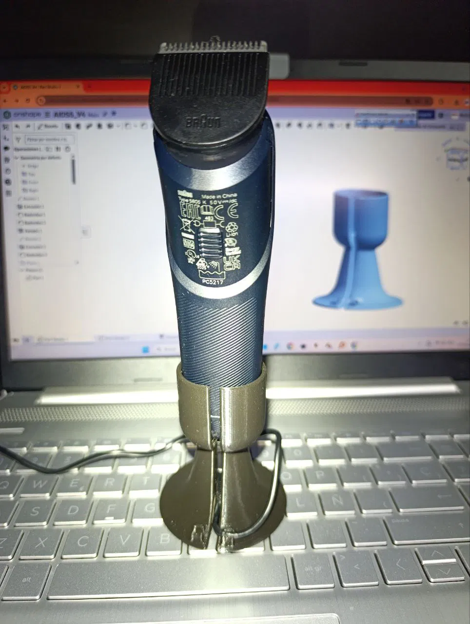 Đế sạc dành cho máy cạo râu Braun AIOS5. Mẫu được in bằng PETG. Không bắt buộc dùng support, nhưng nên dùng để bề mặt hoàn thiện đẹp và gọn hơn sau khi in.