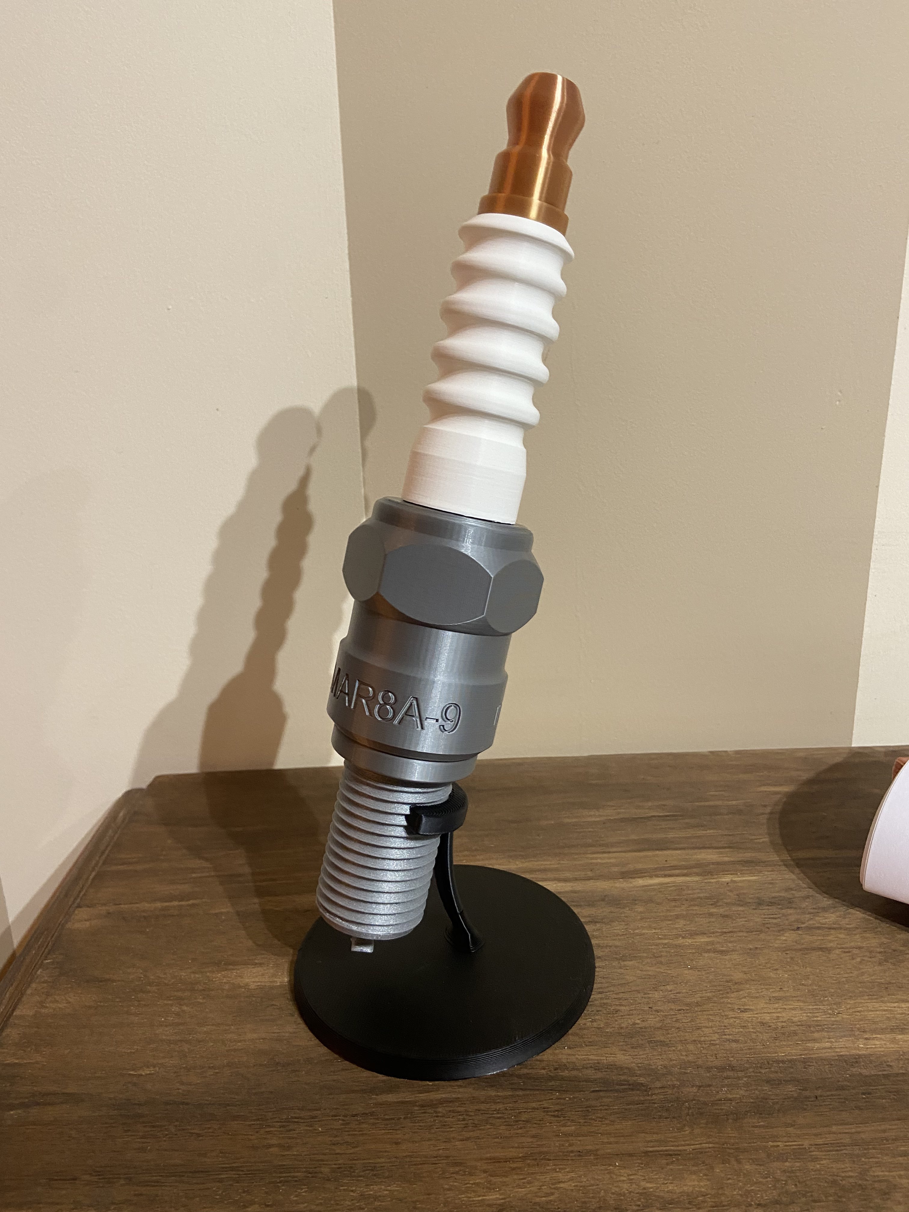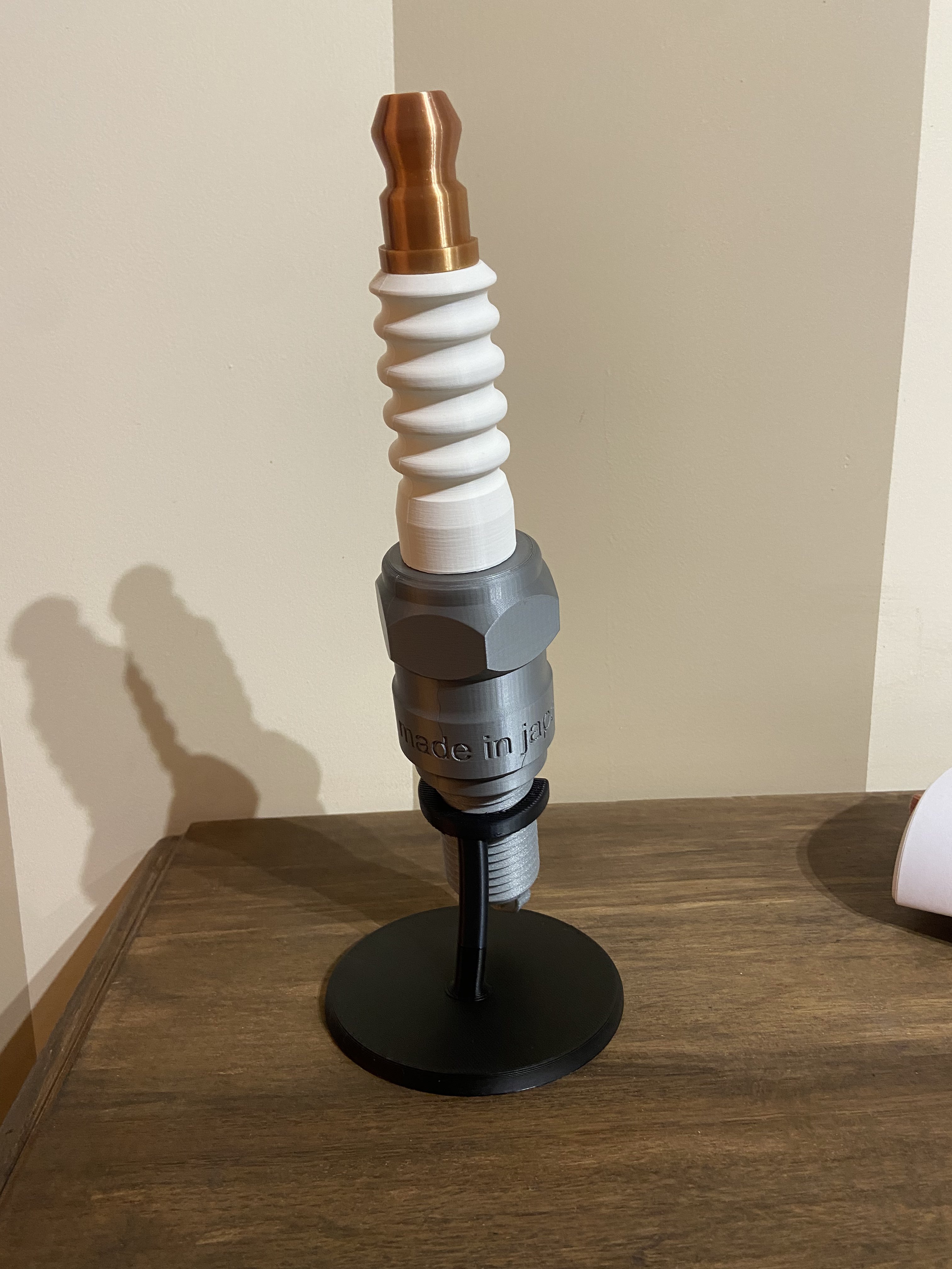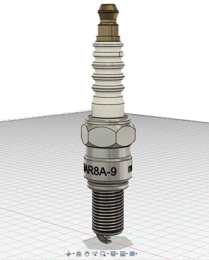 Mẫu bugi (spark plug / bougie) LMAR8A-9 kích thước thật, thiết kế bằng Fusion 360 và chia nhiều phần để lắp ráp. Tác giả in thử ở tỉ lệ 400%. Lưu ý vặn vòng đệm vào ren trước khi dán hoàn chỉnh.