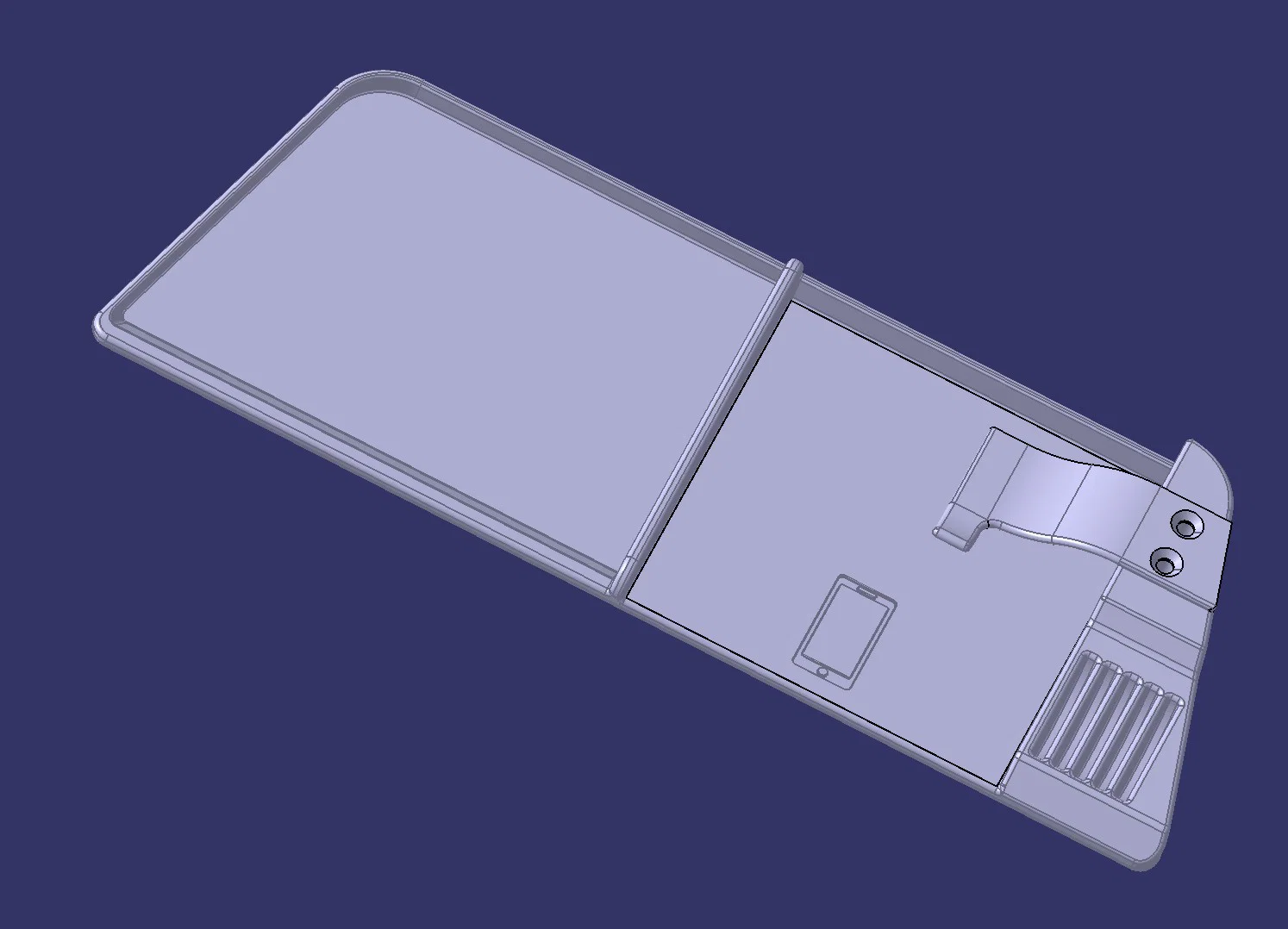 Khay để đồ và giá đỡ điện thoại cho các dòng Stellantis K0. Bản này có vài chỉnh sửa để in dễ hơn, giảm vật liệu; tấm plate in riêng rồi dán. Lỗ 4mm dùng cho M3 heat-set insert và vít M3x10 để gắn kẹp.