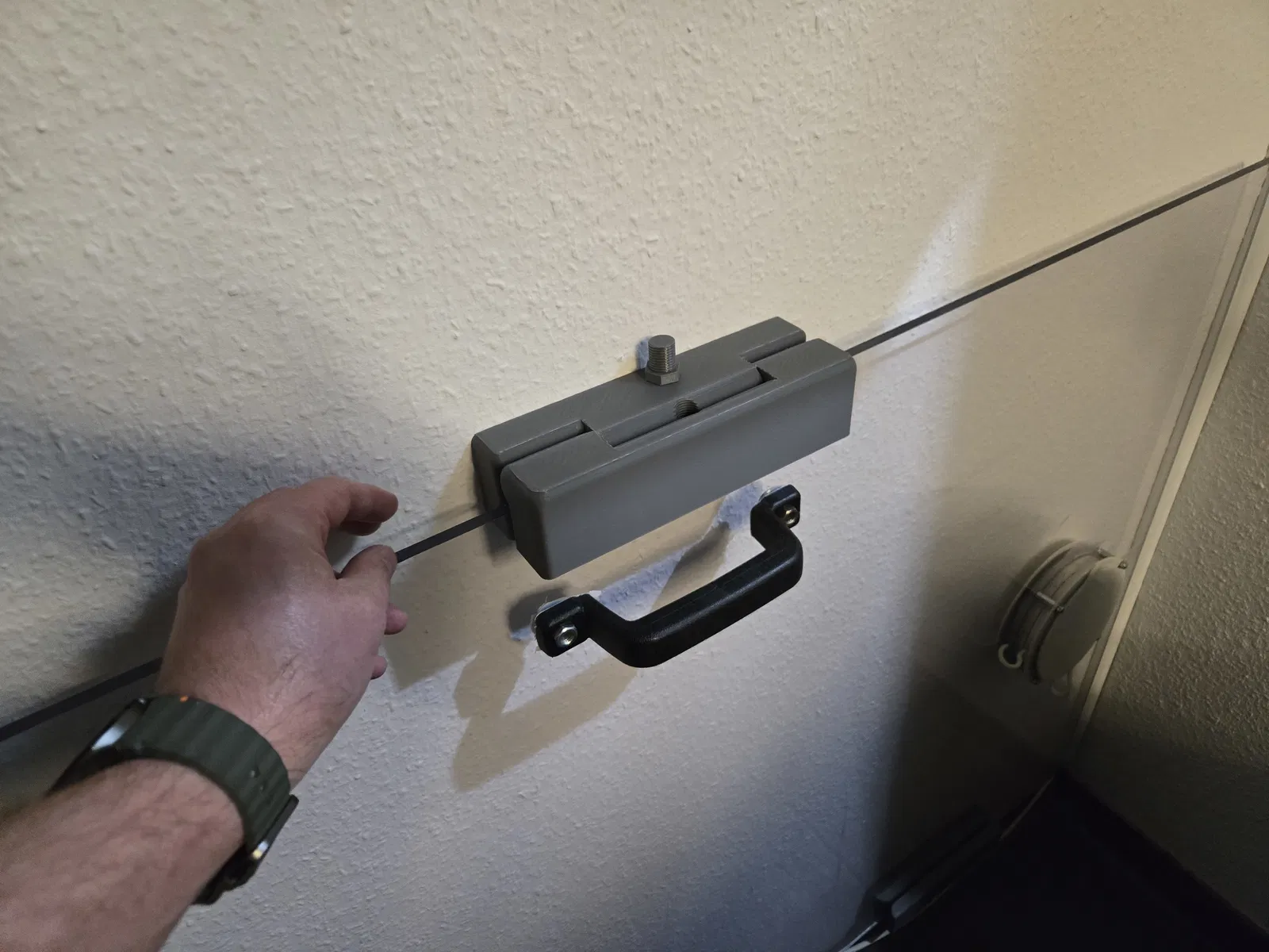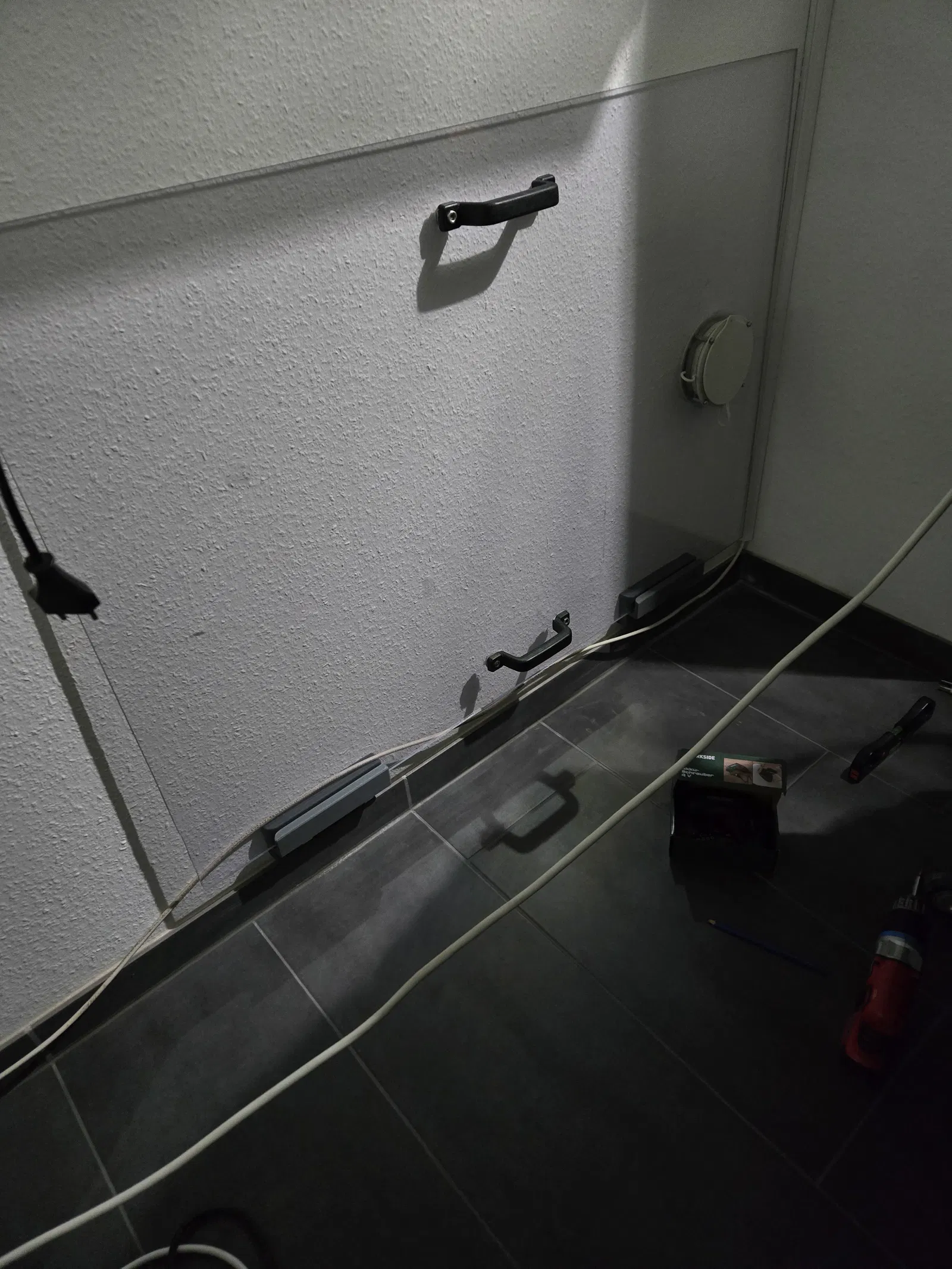 Wandhalterung cho tấm Plexiglas 8 mm của mình, mình kẹp vào cửa sổ mở để nối máy lạnh di động.