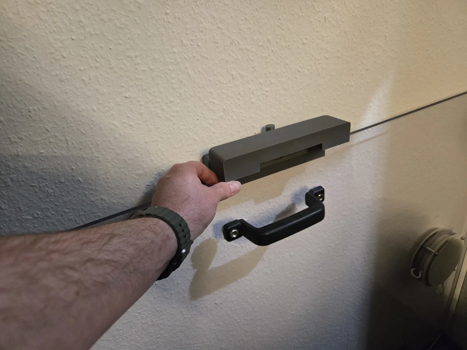 Ngàm/giá treo tường cho tấm Plexiglas 8 mm của mình, mình kẹp vào cửa sổ đang mở khi dùng máy lạnh di động (mobile AC).