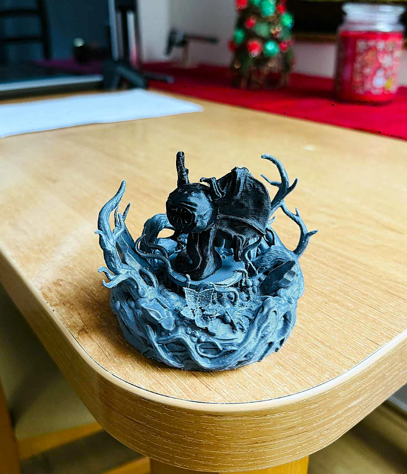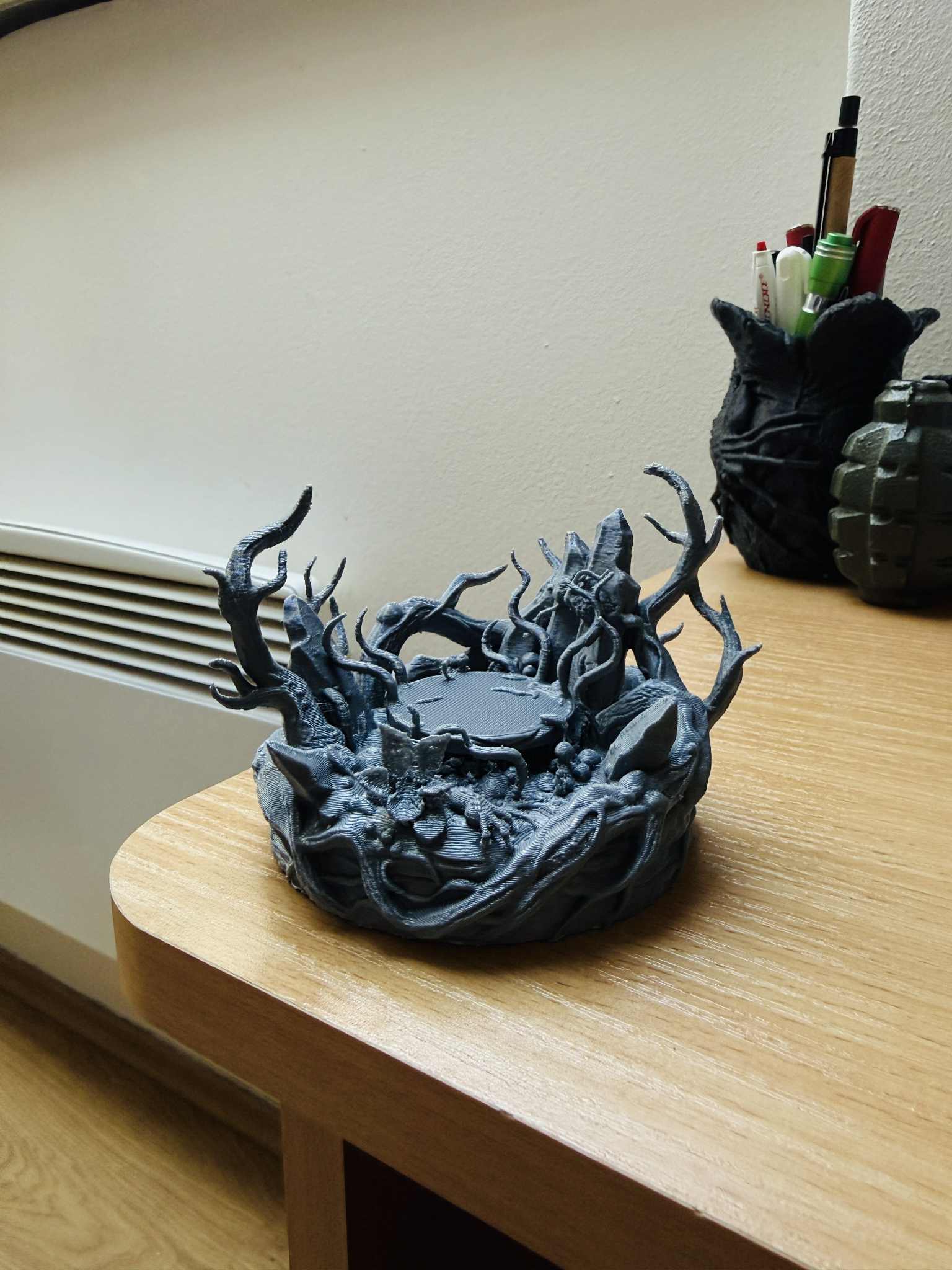 Đế in 3D lấy cảm hứng từ không khí bí ẩn kiểu “Upside Down” trong Stranger Things, phù hợp làm podstavec/diorama trưng bày. Nên giảm tốc độ in và hỗ trợ (support) kỹ khi in đúng kích thước gốc.