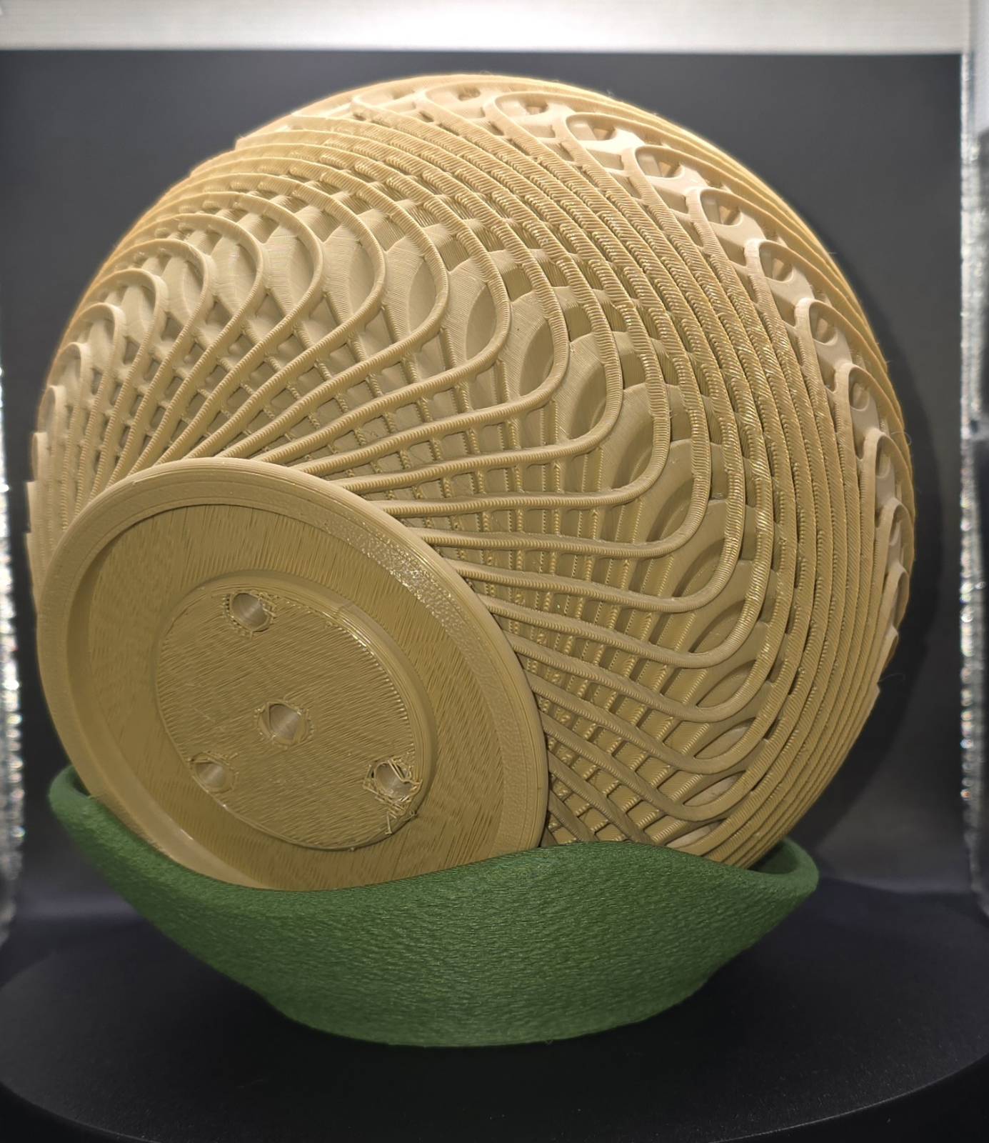 Nên dùng PLA hoặc PETG để đảm bảo độ bền. Nozzle 0.4 mm là lựa chọn lý tưởng để lên chi tiết các đường xoắn sắc nét. Cần dùng supports ở các vùng overhang, và layer height 0.15 mm sẽ giúp họa tiết rõ và đẹp hơn.
