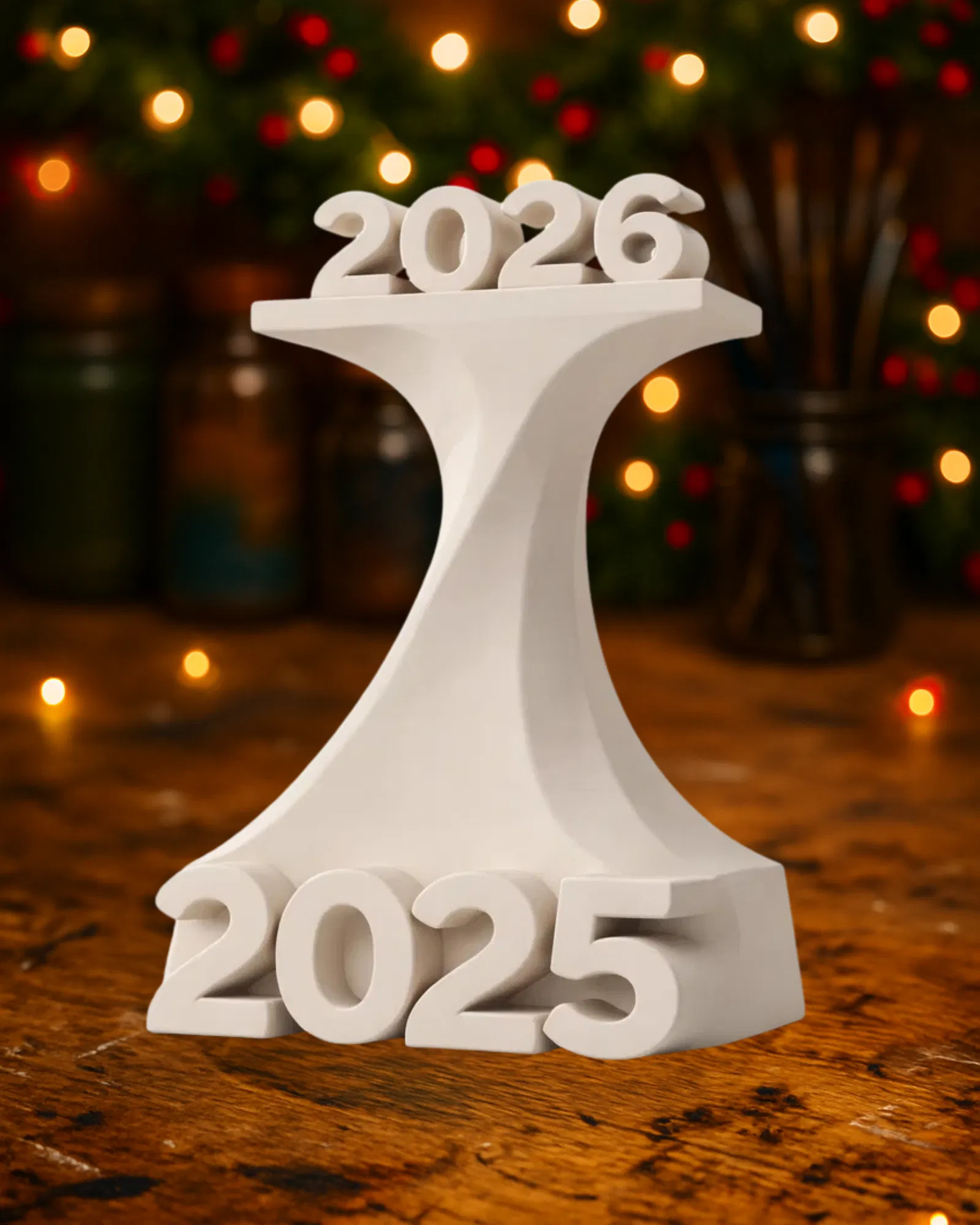 Mẫu tượng nghệ thuật “From 2025 to 2026 Time Flow Sculpture New Year Time Shift” gợi cảm giác chuyển giao năm mới: tạm biệt 2025, chào 2026. Thiết kế mang thông điệp thời gian trôi không khoan nhượng, hợp decor bàn làm việc.
