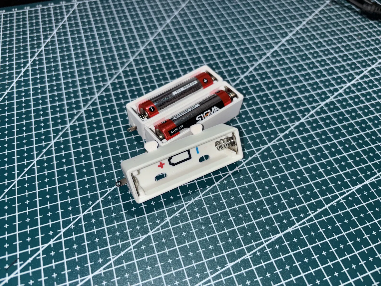 Khay đựng pin AA đơn giản, chỉ cần chuẩn bị một bộ tiếp điểm pin để lắp vào là dùng được. Mẫu có thể in multicolor, phù hợp làm hộp/giá đỡ pin cho các dự án DIY.