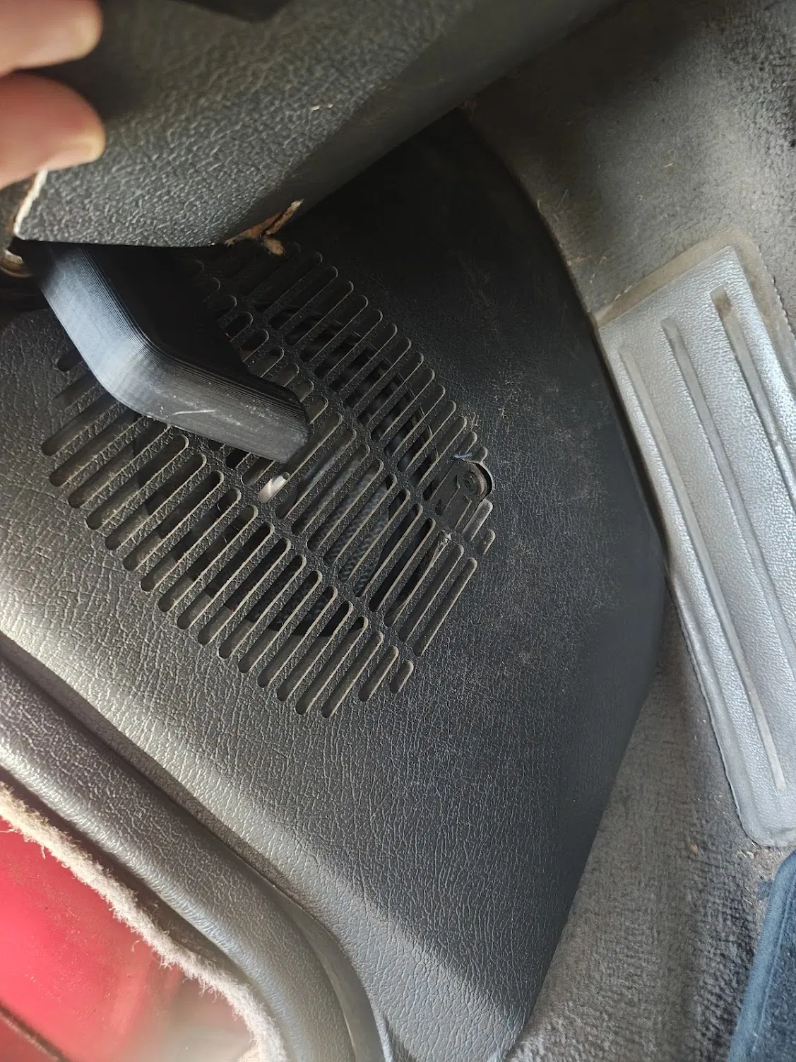 Tay cầm thay thế cho cần mở nắp capo (hood release). Mình dùng vài tháng nay rồi mà không gặp vấn đề gì như bị gãy. Khi in thì canh để phần nhựa quanh sợi cáp được đổ đầy hoàn toàn. Sẽ cần khoan bỏ cái rivet, và mình bẻ cái tai kim loại nhỏ sang một bên cho dễ lắp đúng vị trí. Mình dùng một con bolt nhỏ kèm vài cái washer để thay cho rivet.