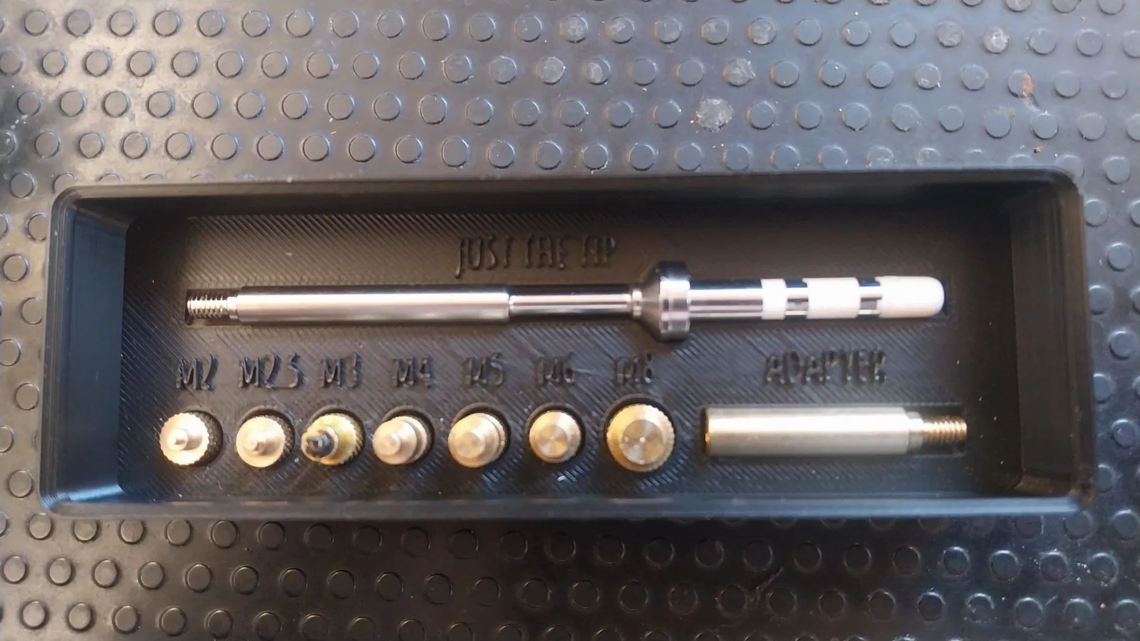 Có chỗ để 7 heat insert, cái adapter và đầu TS100/101 Heatinsert Tip.