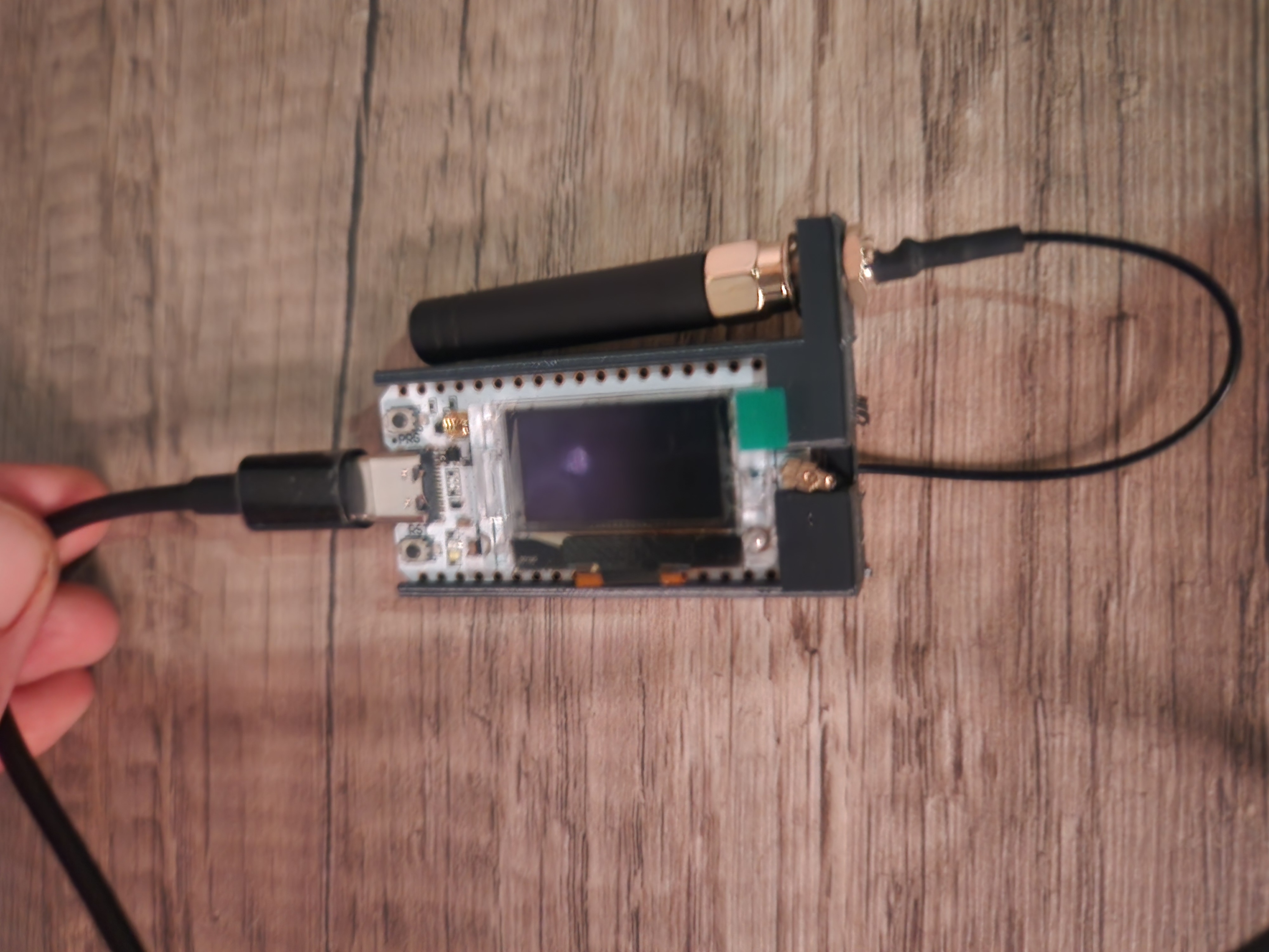 Mình thêm một cách nhanh để gắn cái antenna đi kèm. Con Heltec V3 này được dùng như một “base” nên chỉ cần dán nó gần cục sạc USB.