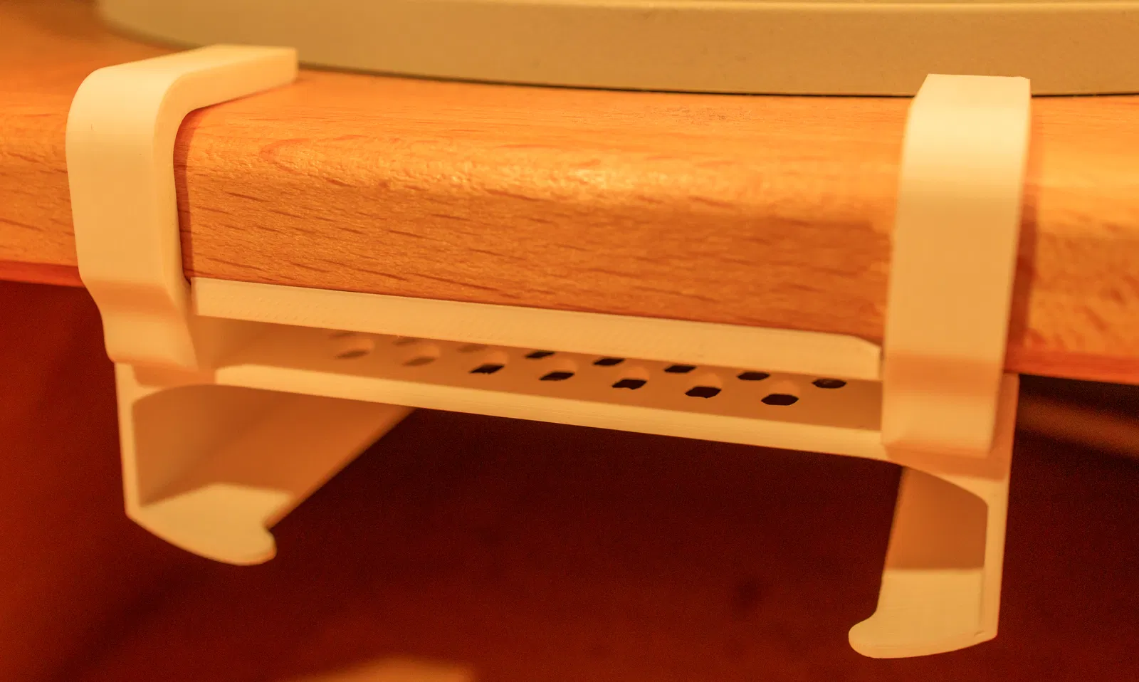 Đây là một cái giá đỡ (halterung) cho Anker Nano Charger. Mình muốn gắn nó lên để nó không nằm trên mặt bàn, tránh bị che khuất. Để vẫn thoát nhiệt lên phía trên, phần khe ở trên có các lỗ thông gió. Trong khe này sẽ dán (glue) cái kẹp (clamp) để kẹp cố định lên bàn.