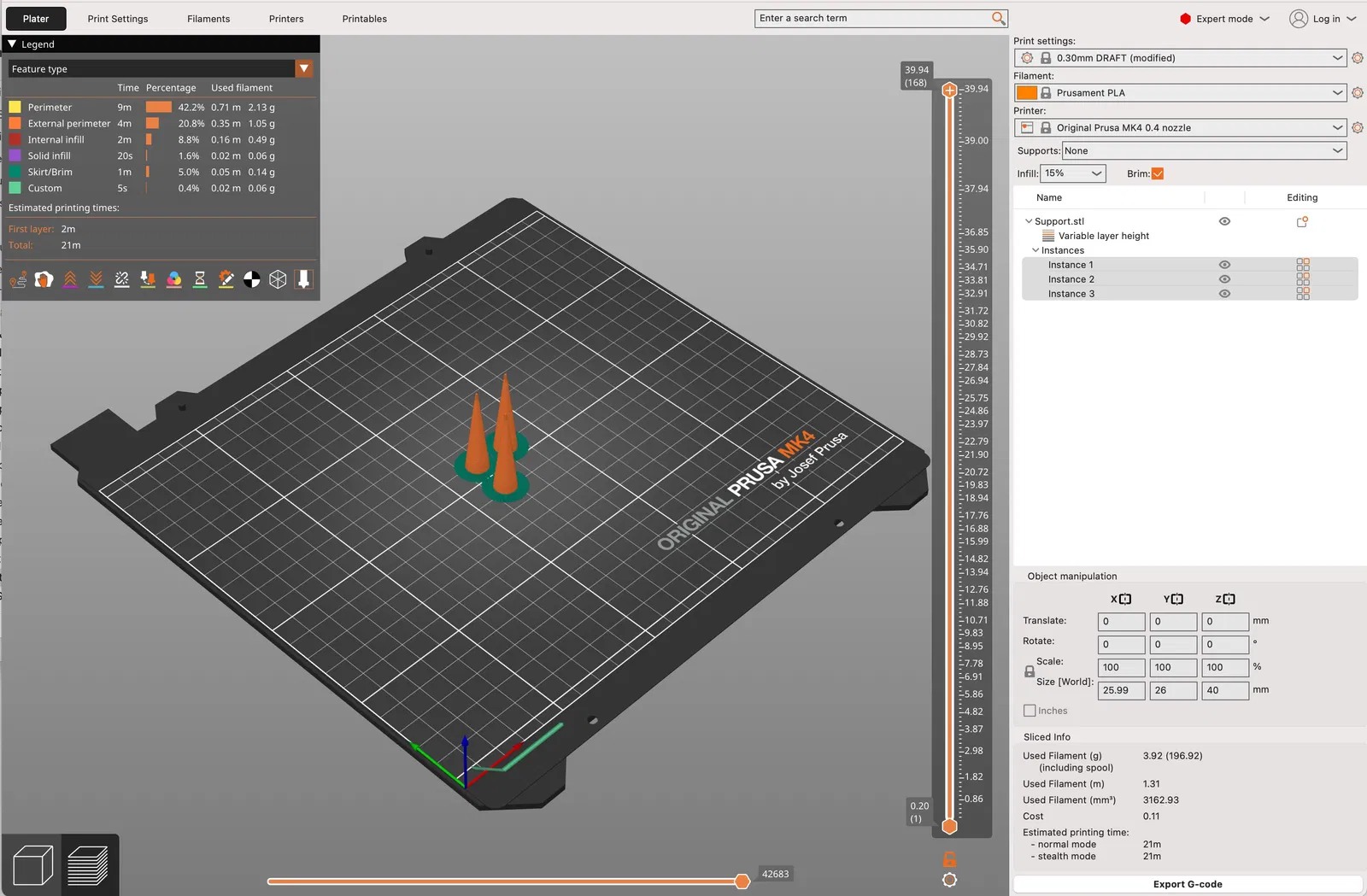 Lượng filament dùng (g): 4