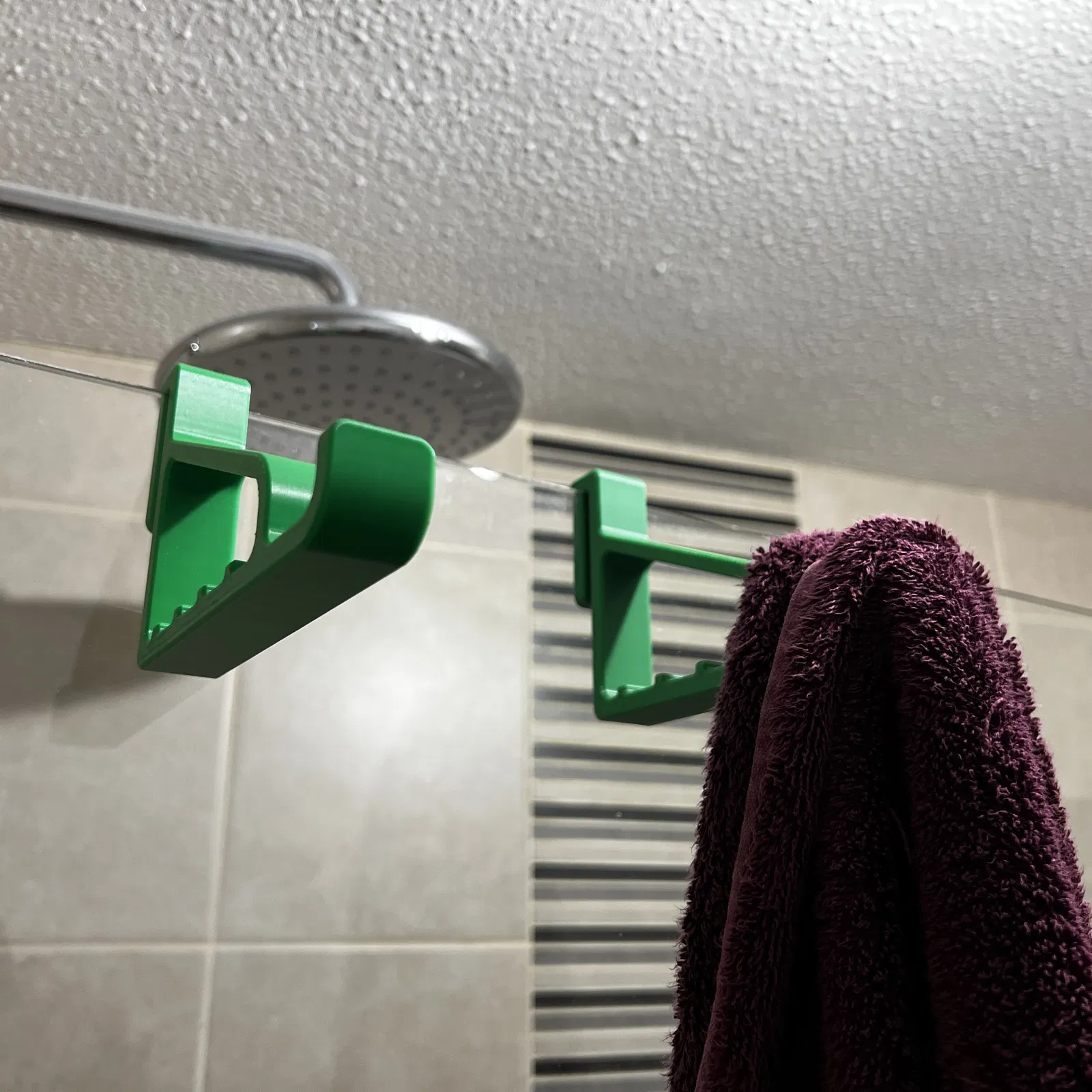 Mẫu móc treo quần áo/khăn cho phòng tắm, thiết kế STRONG để treo đồ nặng. Đã test chịu hơn 10kg ở móc ngoài cùng. Size mặc định 6.2mm, nên in thử 3–10mm để canh vừa độ dày kính/cửa.