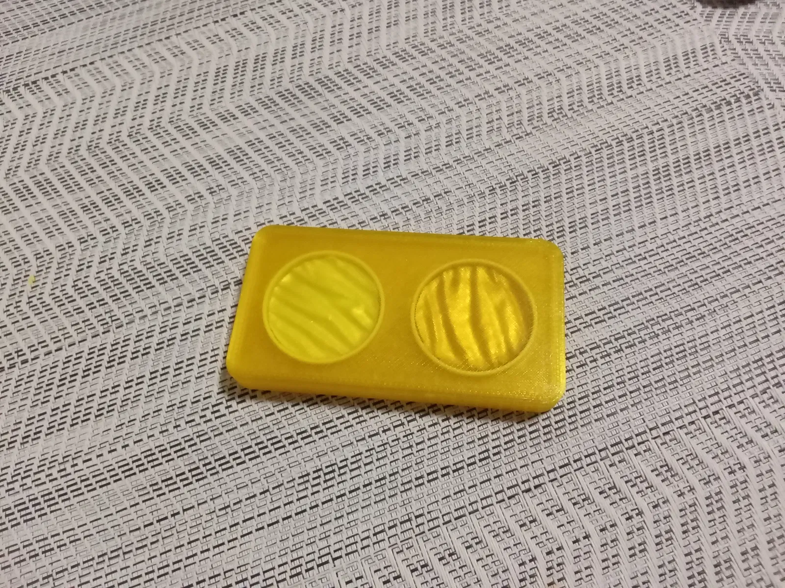 Mình in bằng eSun PETG vàng trong (vì cần độ trong), nhưng PLA thường cũng xài ổn.