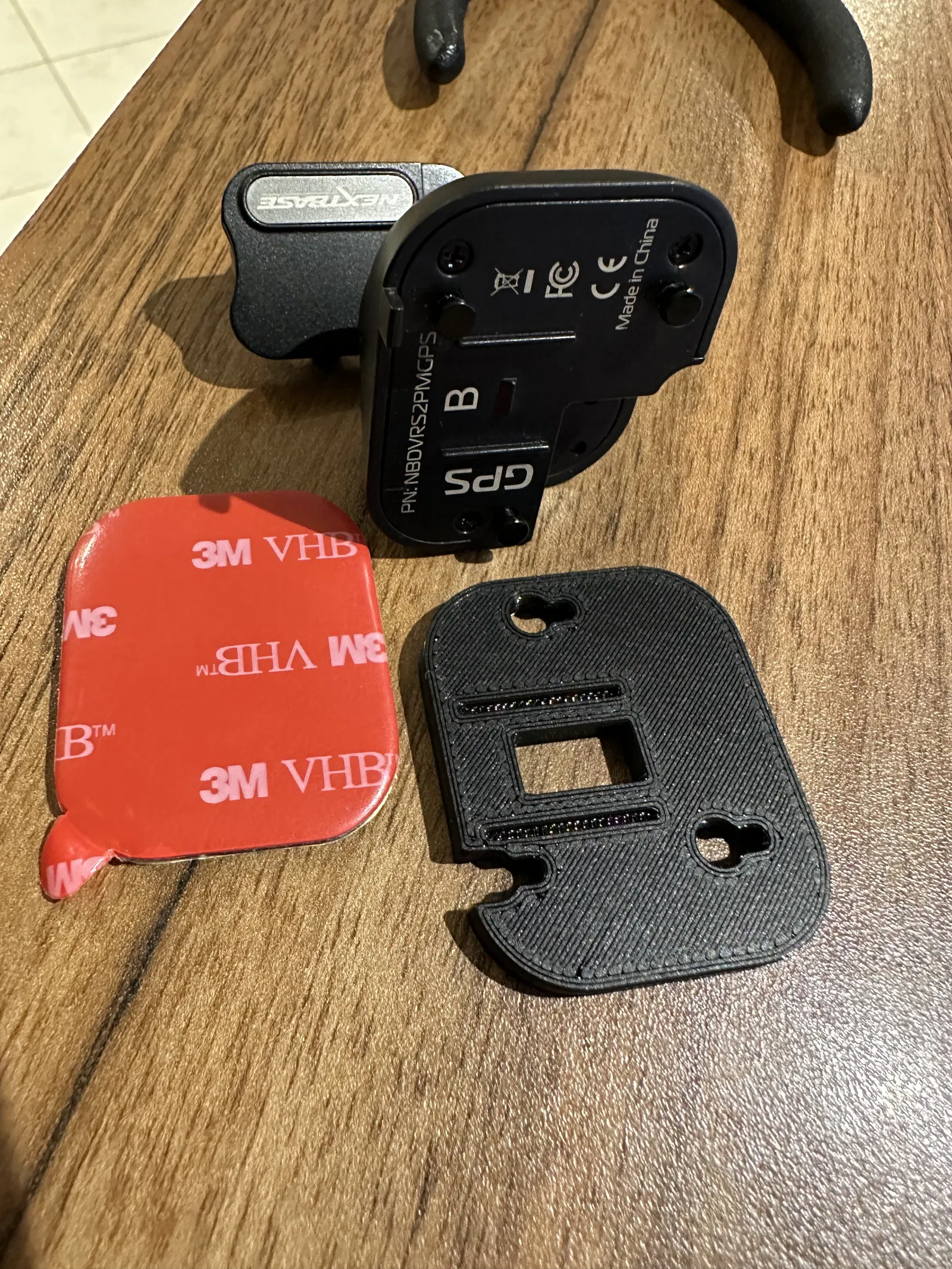 Đế gắn tương thích hệ Nextbase Click&Go cho 522GW, dùng băng keo 3M VHB để dán cố định lên kính. Có file Fusion gốc kèm theo; khuyến nghị in PETG với layer height 0.20mm (preset PrusaSlicer STRUCTURAL).