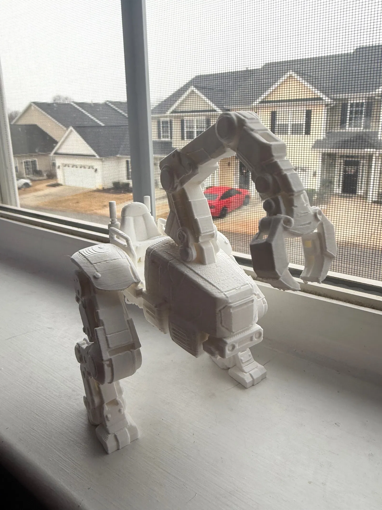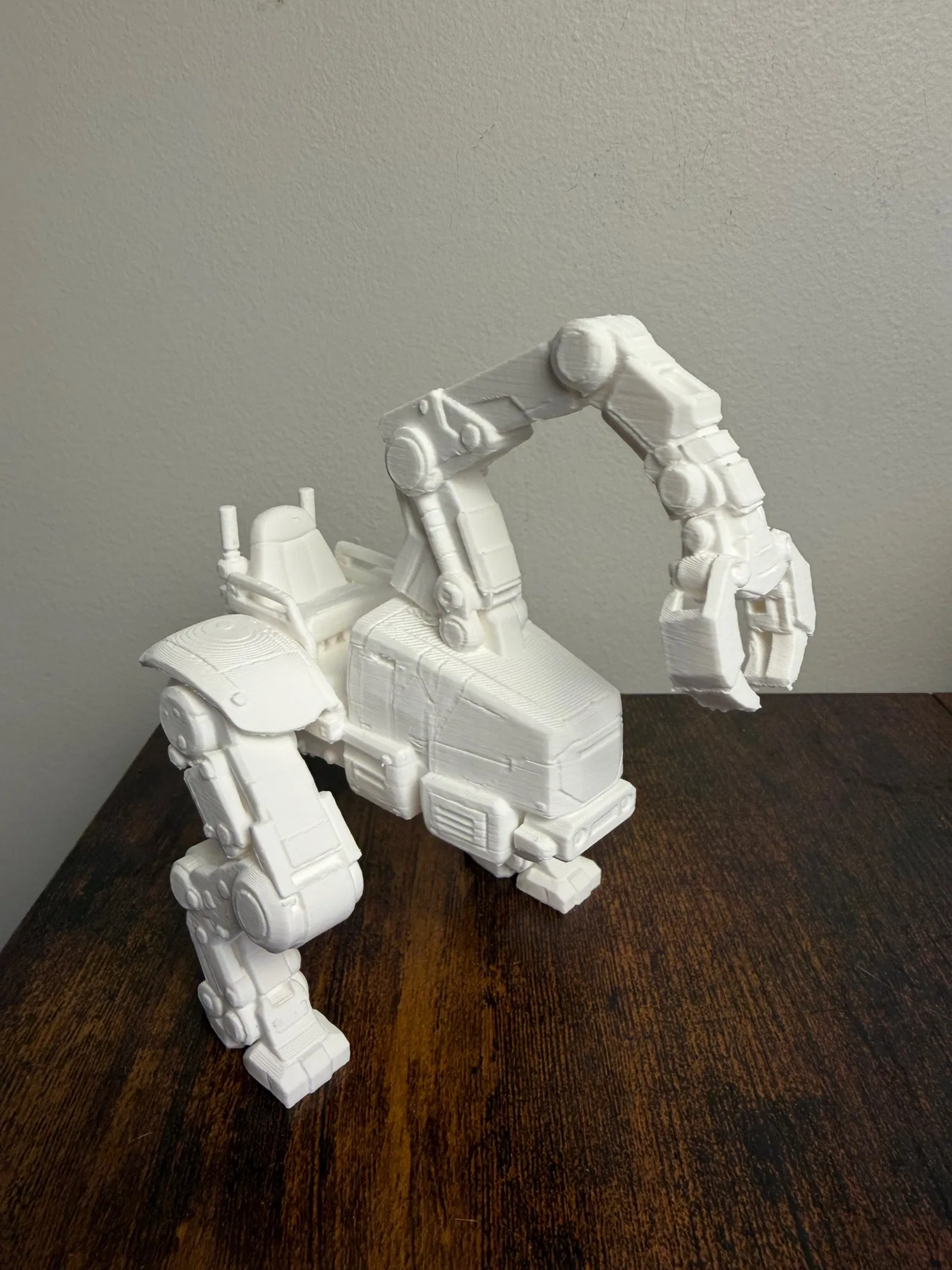 Mẫu máy xúc robot Sci‑Fi kiểu mech walker, thiết kế tương lai với hệ chân khớp linh hoạt và cánh tay kẹp cơ khí mạnh mẽ. Phù hợp trưng bày, diorama hoặc làm mô hình concept.