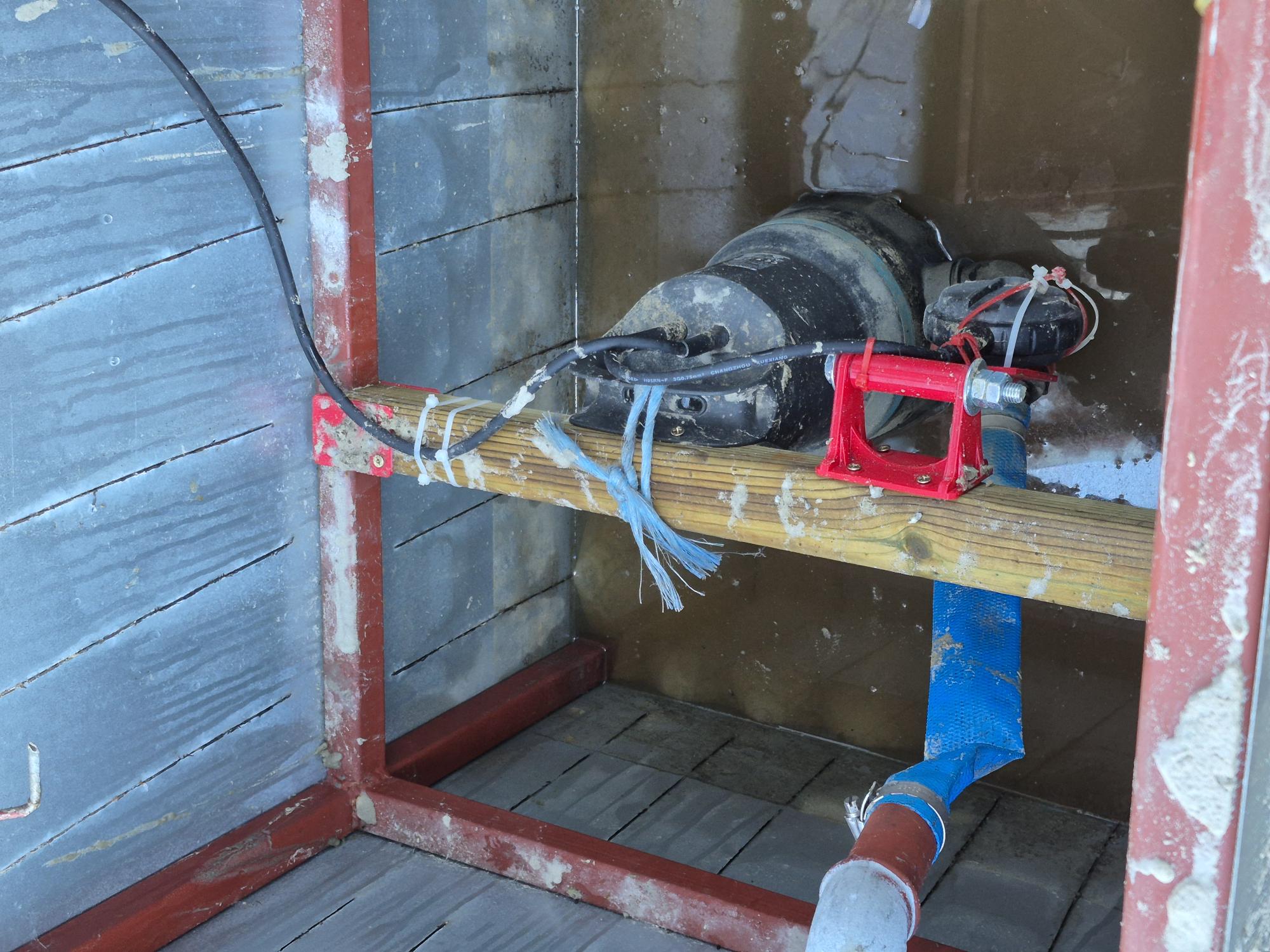 Cơ cấu gồm 2 chi tiết giúp giới hạn chuyển động của phao máy bơm chìm, chỉ cho đi lên/xuống thay vì lắc mọi hướng. Dùng bolt M10 dài để nối 2 mảnh, cố định phao bằng zipties/tie wraps.