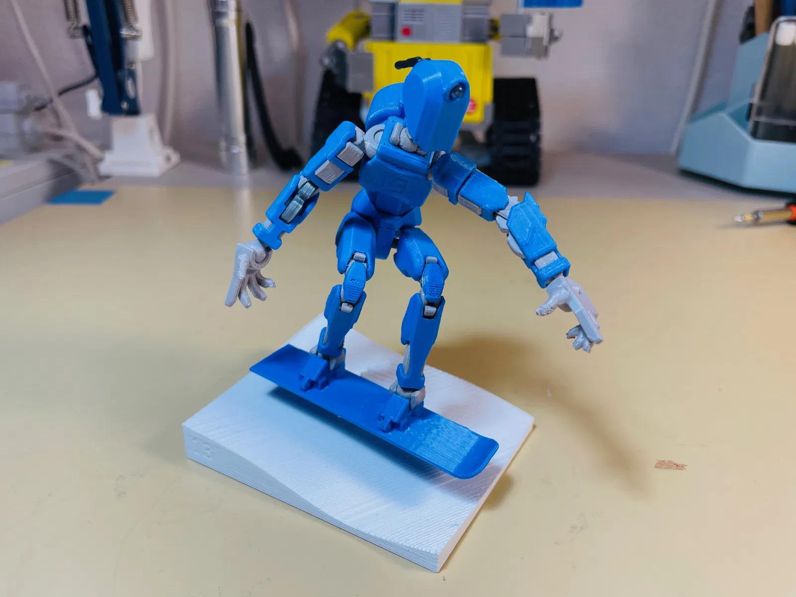 Phiên bản Dummy 13 bobbledummy gắn ski hoặc snowboard lên wobble spring để trưng bày sinh động hơn. Ski và bệ in bằng PLA, còn lò xo in bằng PETG.