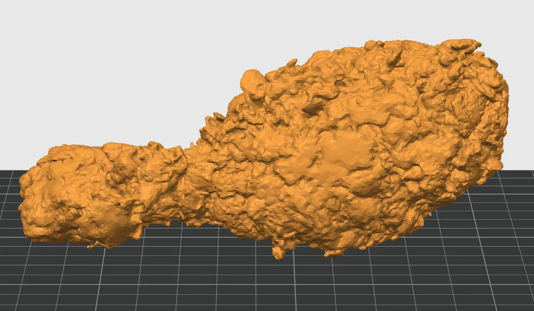 Do chưa thấy có mẫu Fried Chicken sẵn sàng để in 3D, mình đã chuyển đổi một bản 3D scan tìm được online thành model có thể đem đi in ngay.