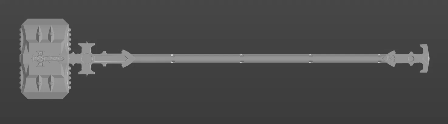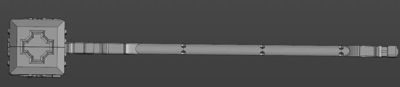 Phiên bản chỉnh sửa nhẹ của mẫu búa trước: thay đổi phần ngàm/khớp gắn và đầu búa hơi khác. Chi tiết số 3 cần in nhiều hơn 1 lần để ghép đủ chiều dài. Lỗ cán vừa ống polypropylene 20mm.