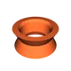 Mình hay mua PLA rẻ nhất có thể để in test. Mấy cuộn này thường hơi méo và đôi khi vành có vết móp nhỏ, khiến cuộn bị kẹt vào cạnh support rồi cuối cùng rớt khi dùng TUSH bản gốc. Nhờ mép vát (chamfer) phía trong, chuyện này không xảy ra với bản của Xtrudor. Nhưng cuộn vẫn có xu hướng trôi về một bên của bạc đạn và tì lên mép.
