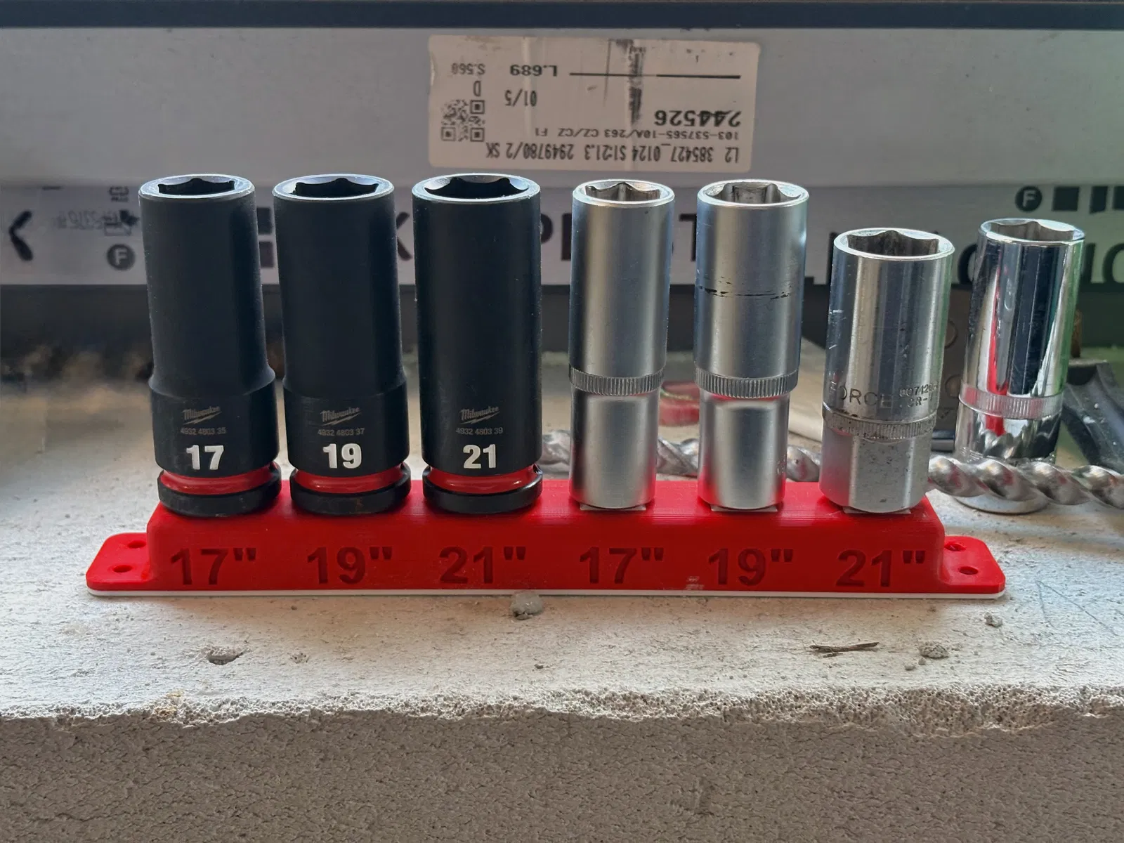 Socket Holder là giá đỡ đầu tuýp (socket) dùng để sắp xếp gọn các đầu tuýp cỡ 17", 19" và 21". Phù hợp cho đồ nghề ô tô, giúp lấy nhanh và tránh thất lạc khi làm việc.