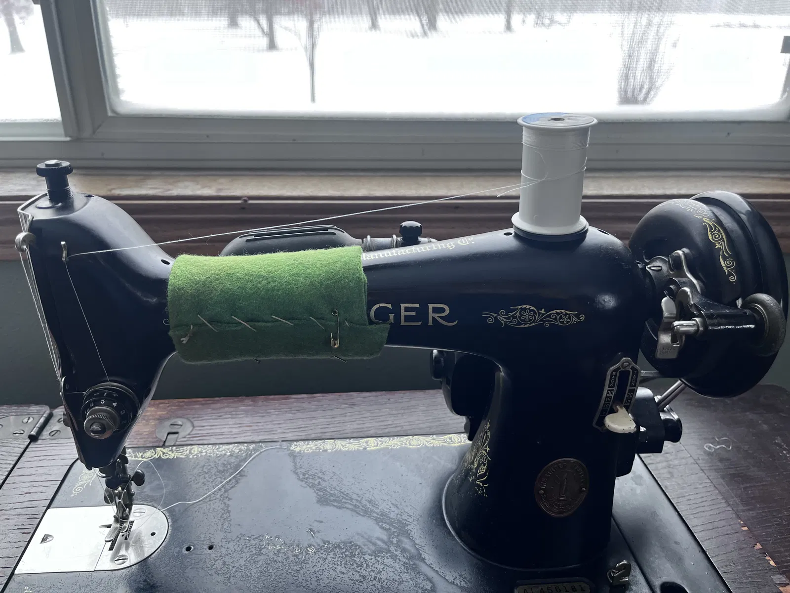 Miếng washer/bảo vệ cuộn chỉ nhỏ mình làm cho máy may Singer đời cũ. Thường thì người ta hay lót một miếng nỉ (felt) phía dưới.