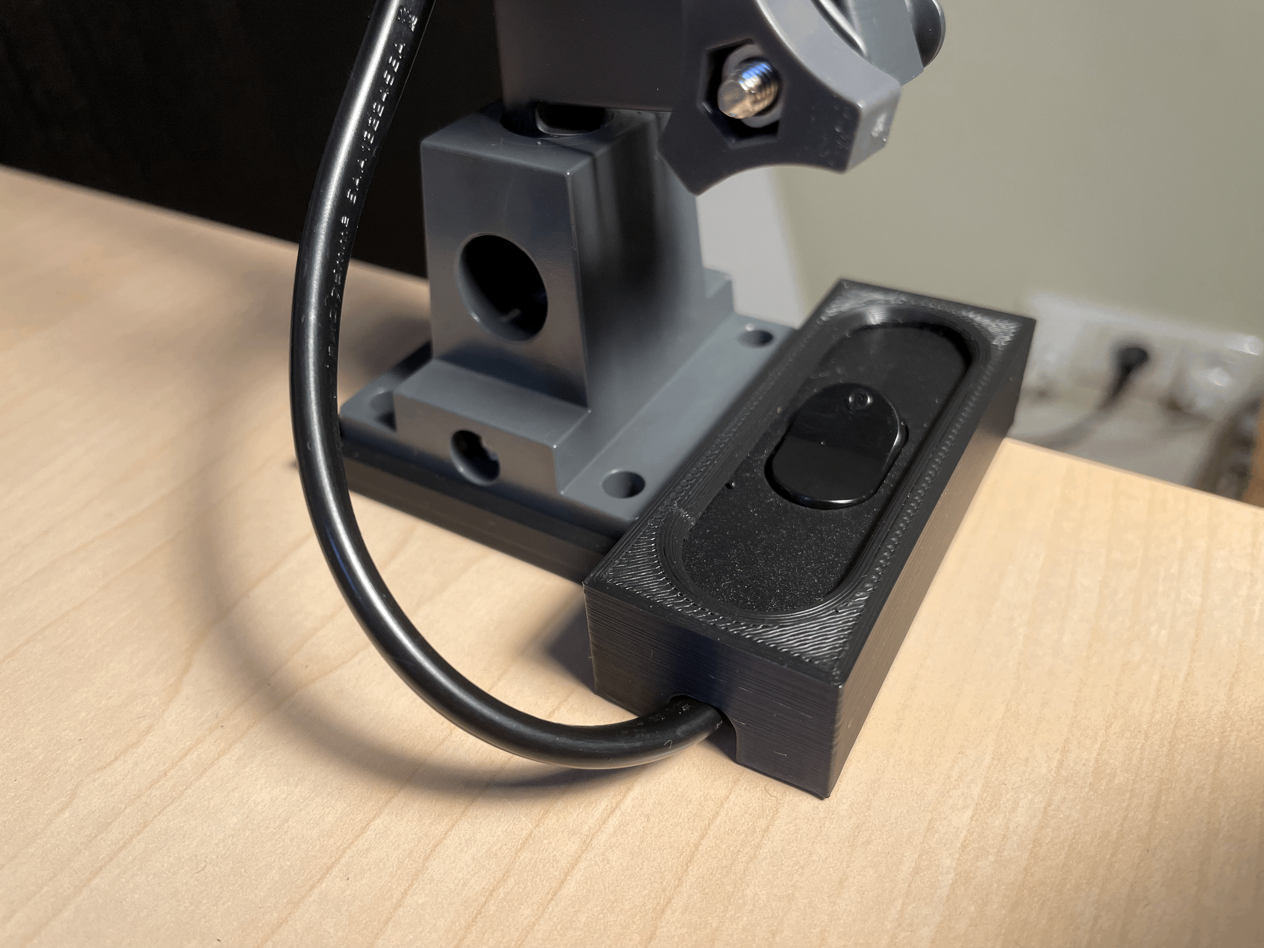 Một cái đế giúp đặt công tắc ngay cạnh đèn. Nhờ vậy công tắc không còn bị thòng lơ dưới gầm bàn nữa.