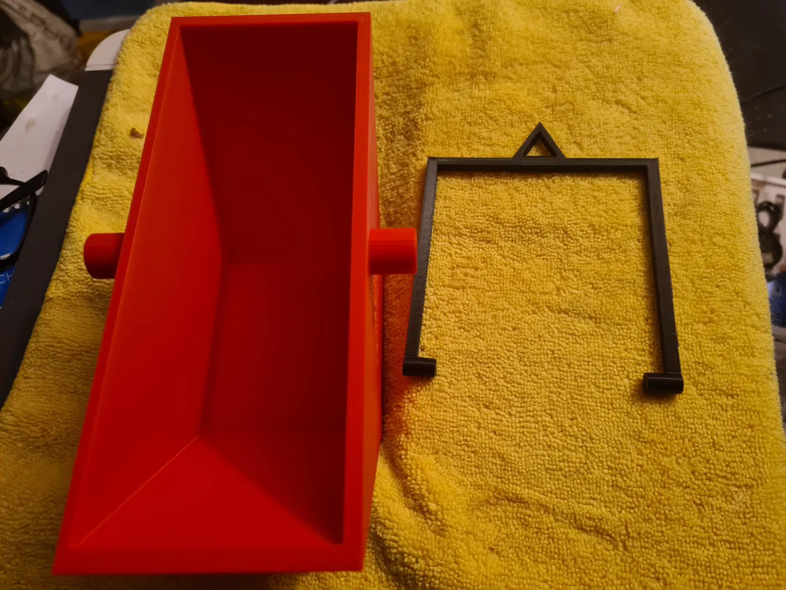 Mình tạo mẫu này cho buổi học vật lý về ròng rọc, để có một mức tải thay đổi bằng cách cho thêm sỏi vào trong. Phần tay cầm có một “eye” để tiện móc bằng hook hoặc treo bằng dây khi nâng thẳng đứng. Tay cầm có thể chỉnh nhẹ để rộng hơn 5mm, nhưng hiện tại vẫn dùng ổn.
