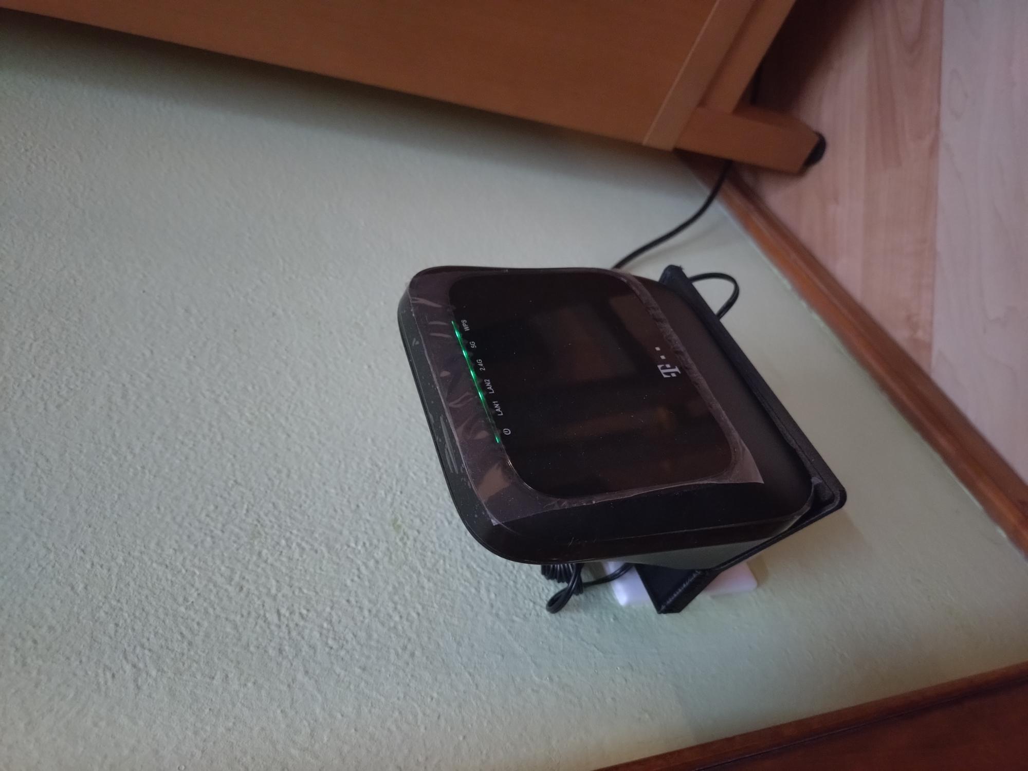 Giá đỡ hộp Mesh của Telekom dành cho ổ cắm EU sử dụng bộ chuyển đổi 3 chiều.