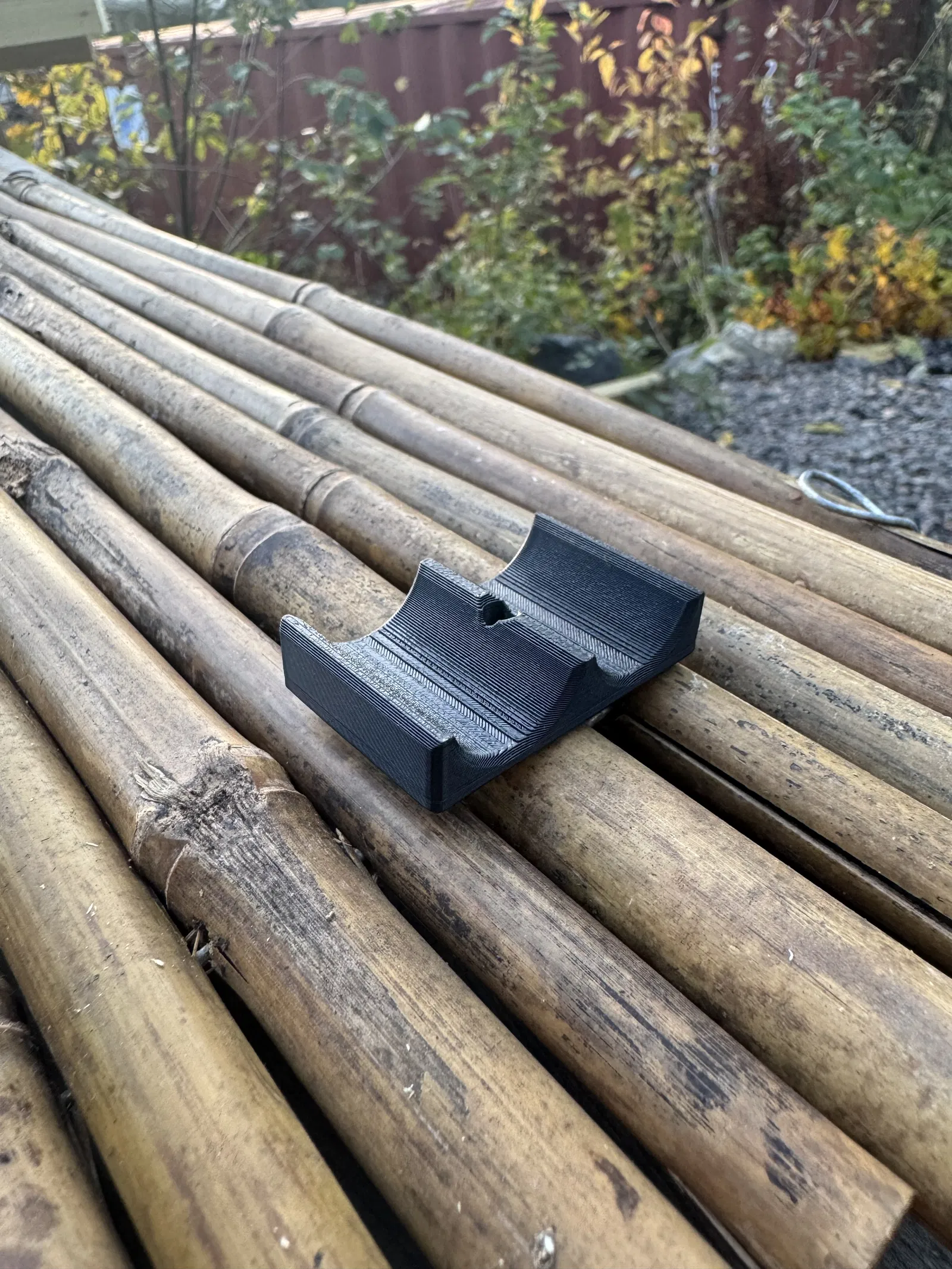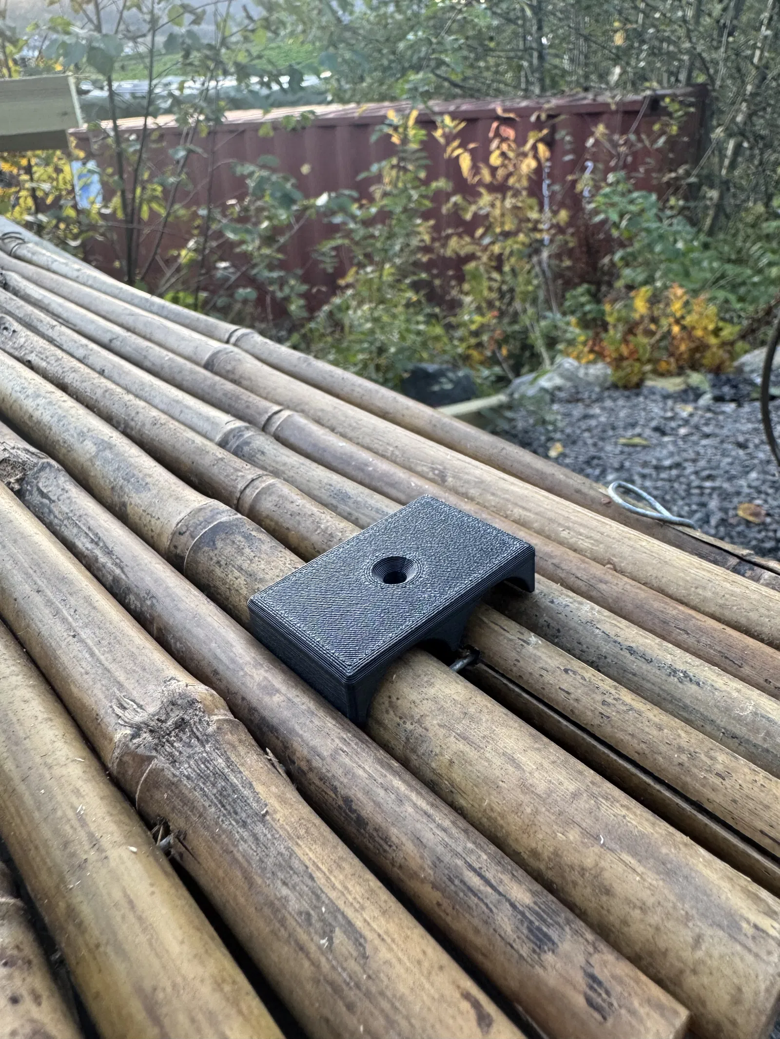Mình muốn gắn một hàng rào tre mà không cần khoan lỗ nào hết, nên mình thiết kế cái bracket này để dễ dùng, kẹp tre chắc chắn mà vẫn giữ cây tre nguyên vẹn.