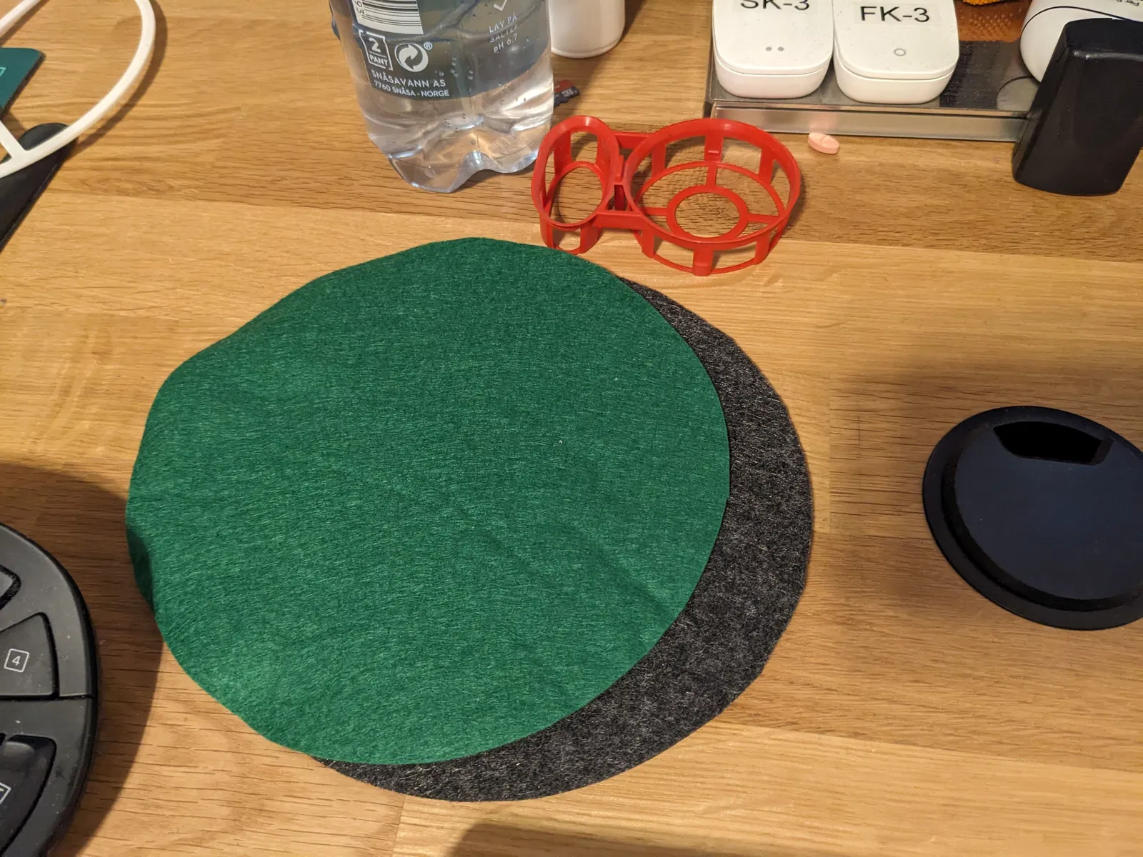 Để chắc chắn (cứng) hơn, bạn có thể dùng mỏ hàn để làm chảy và hàn các mảnh lại với nhau. Dùng keo xịt (spray adhesive) để dán lớp nỉ (felt) lên mặt board.