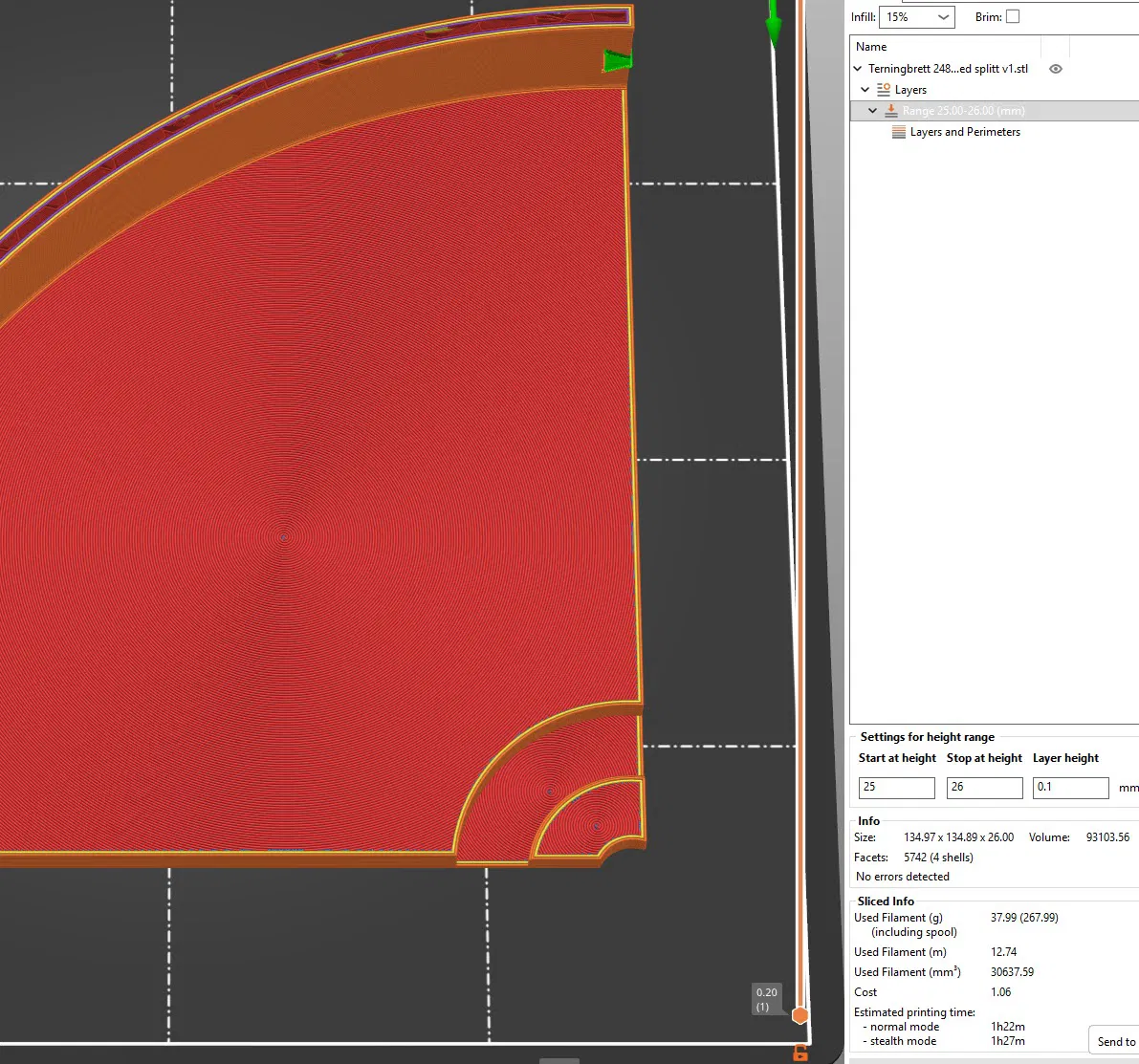 Dice board có đường kính trong 248 mm, được chia thành 4 phần để dễ in trên đa số máy in 3D. Có thêm các phiên bản kích thước đầy đủ. Có thể hàn mảnh bằng mỏ hàn và dán nỉ bằng keo xịt.