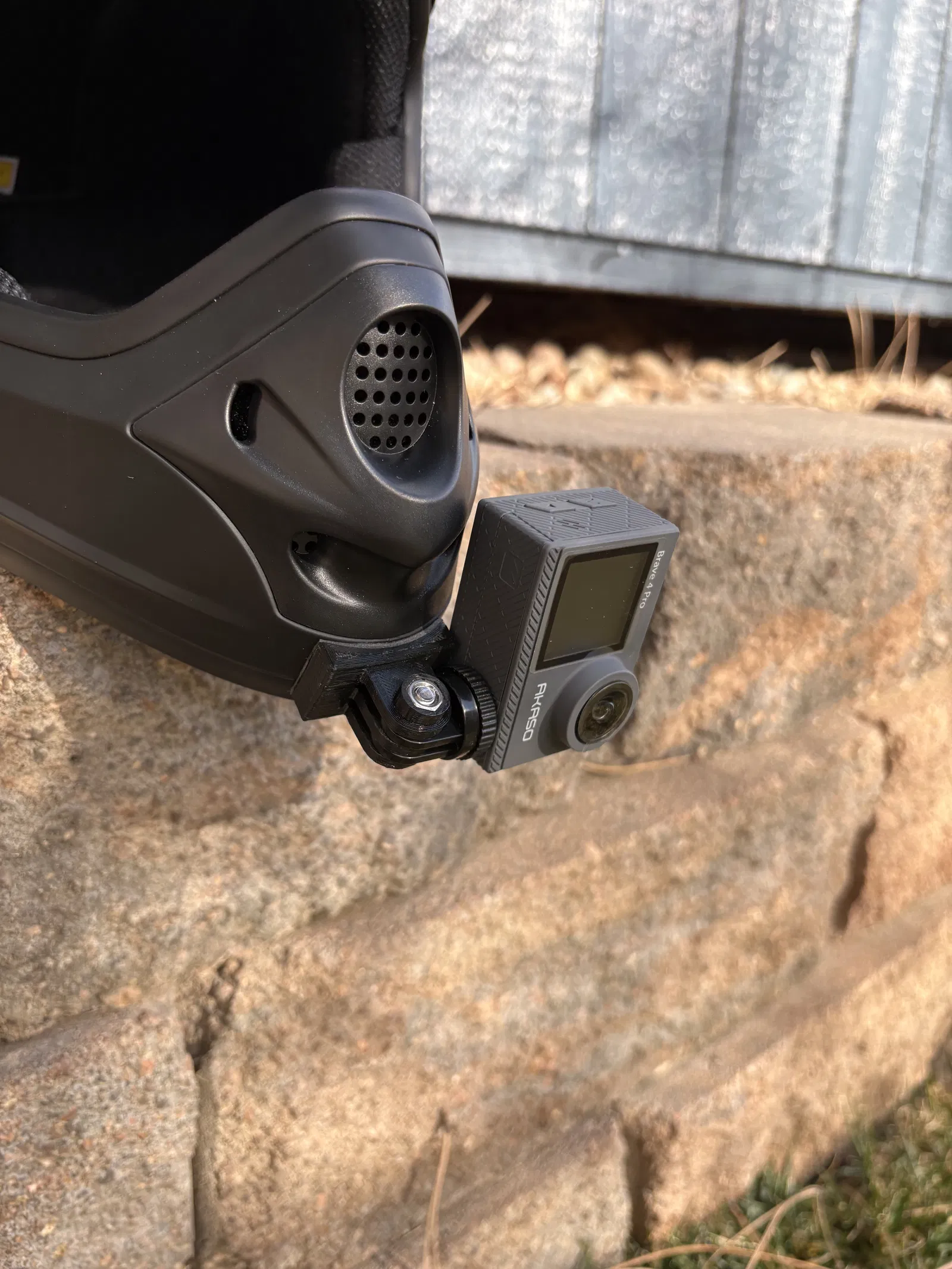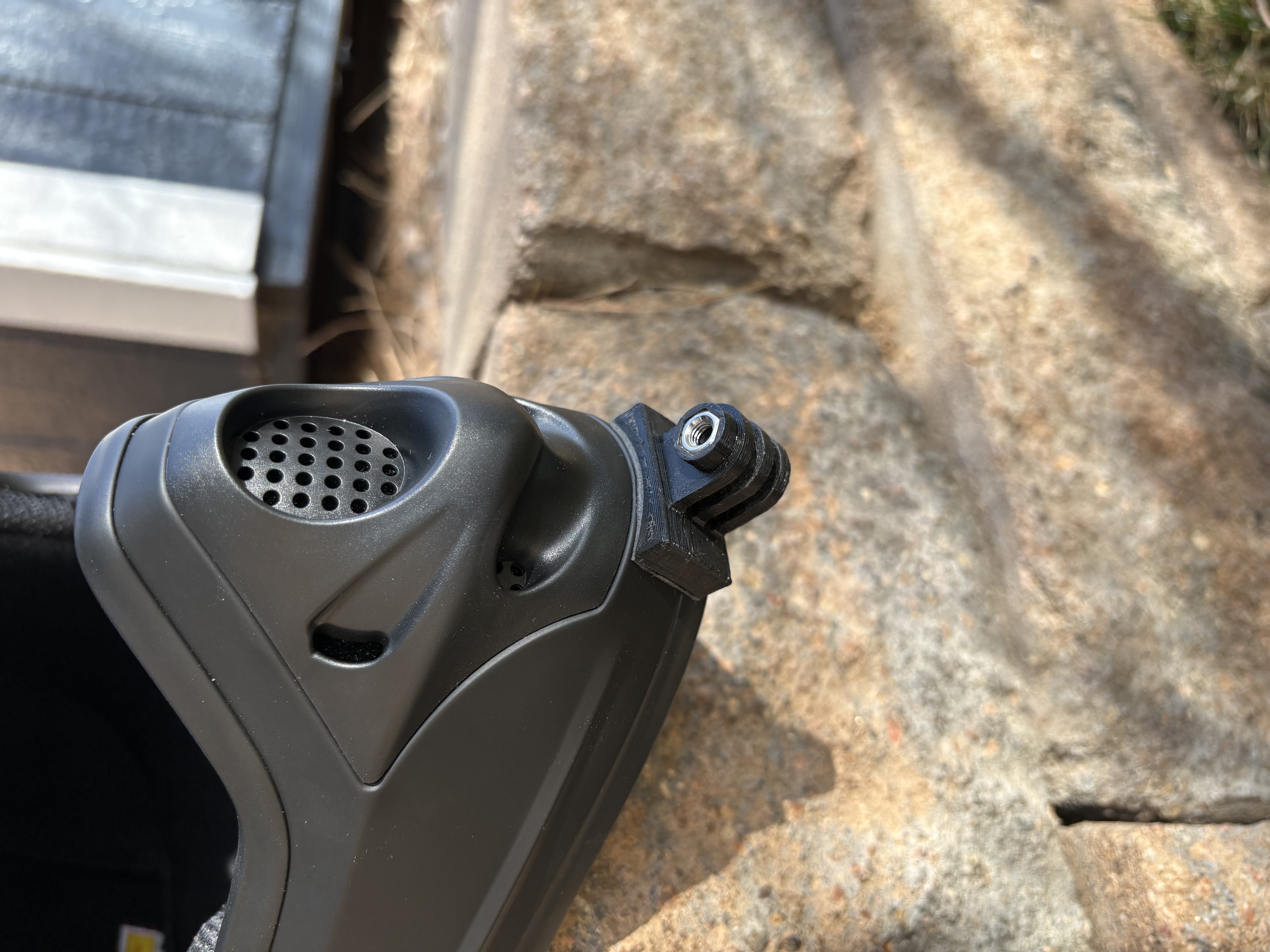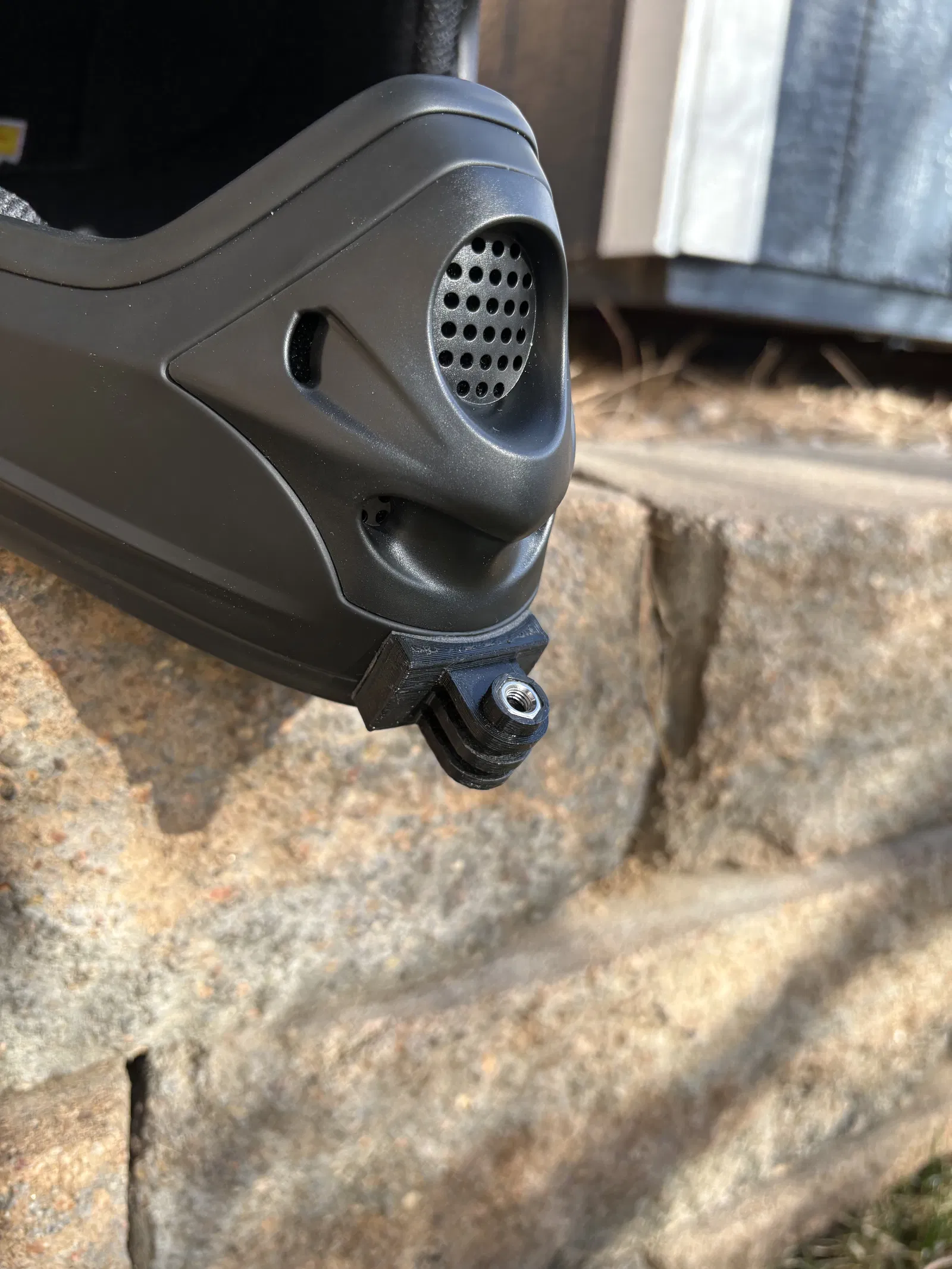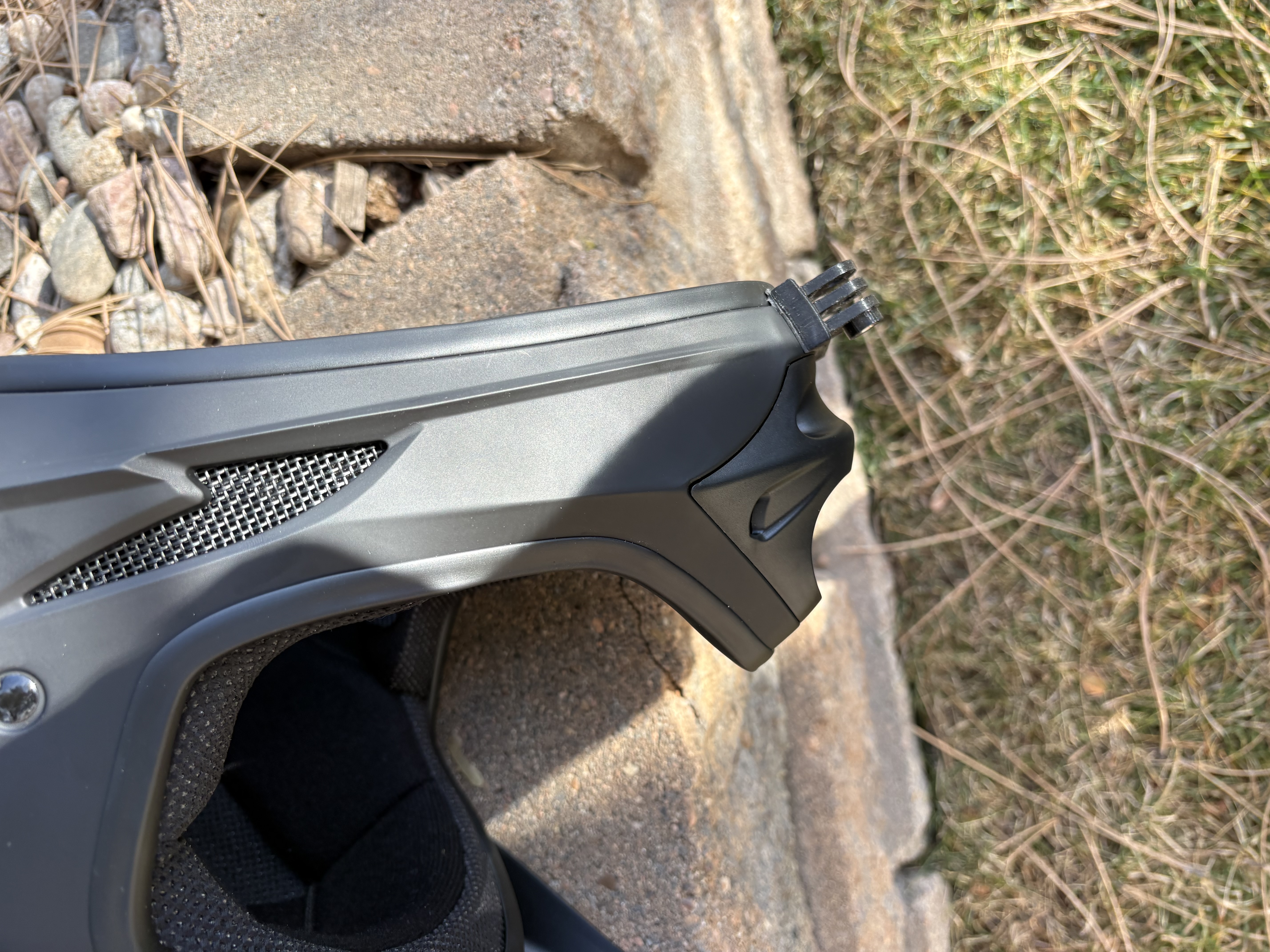 Mẫu ngàm gắn GoPro ở cằm dành cho nón bảo hiểm sevenIDP (7IDP) M1 và các nón tương tự. Có thể cần hơ nóng và ép lên nón để ôm đúng đường cong; ngạnh 3mm, khe 3mm. Dán bằng băng keo 3M.