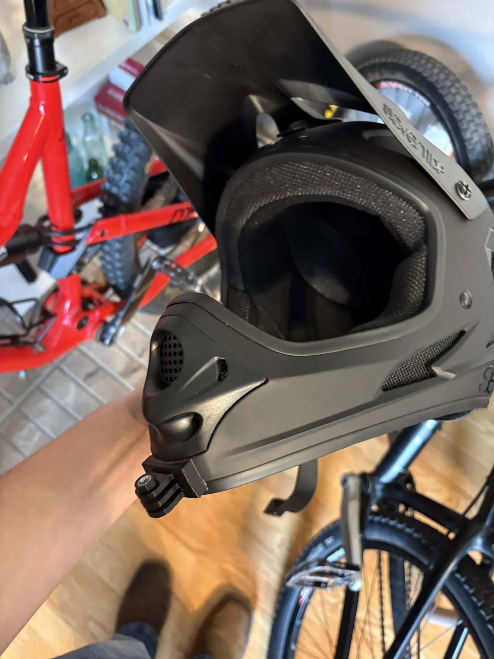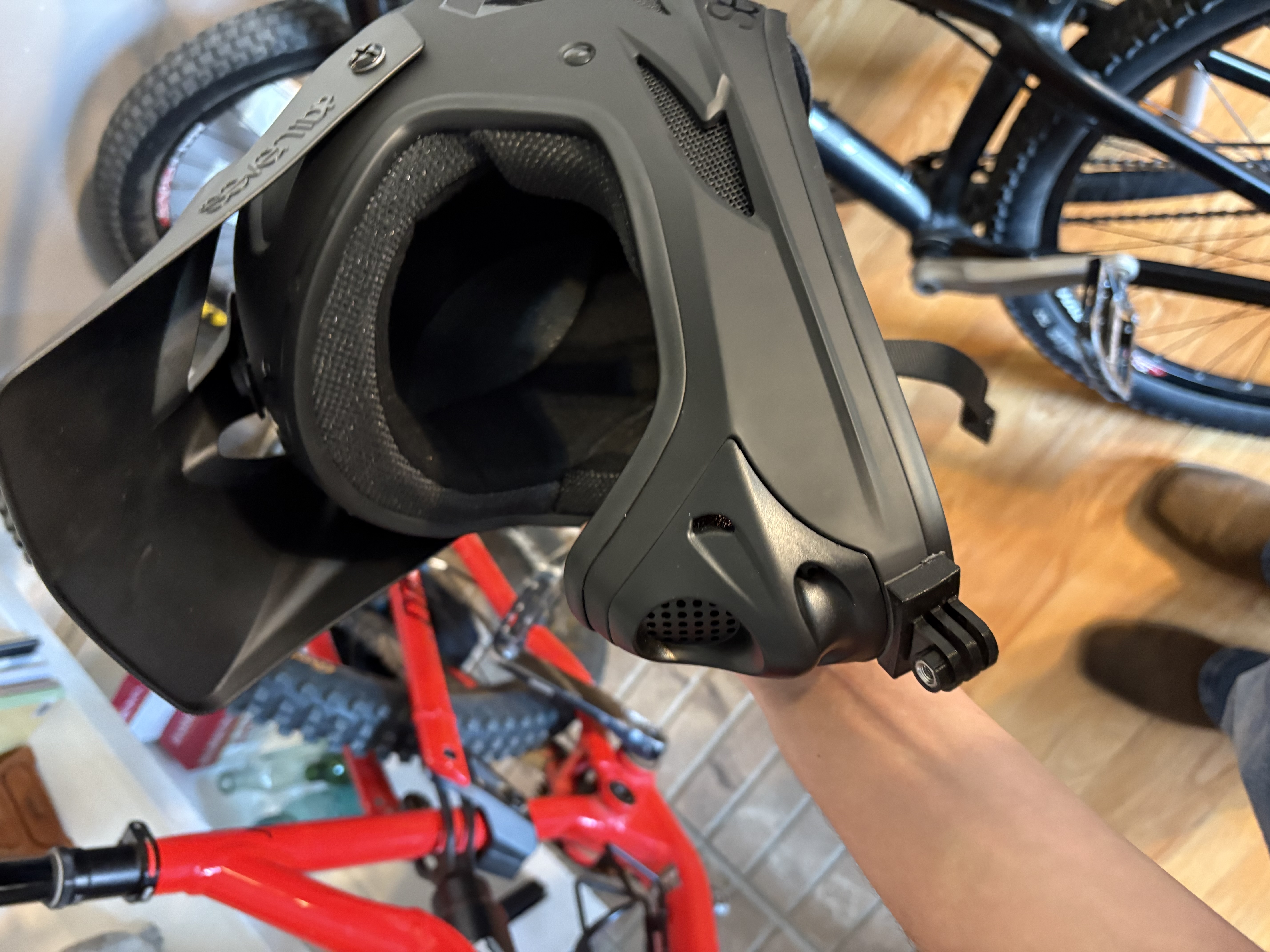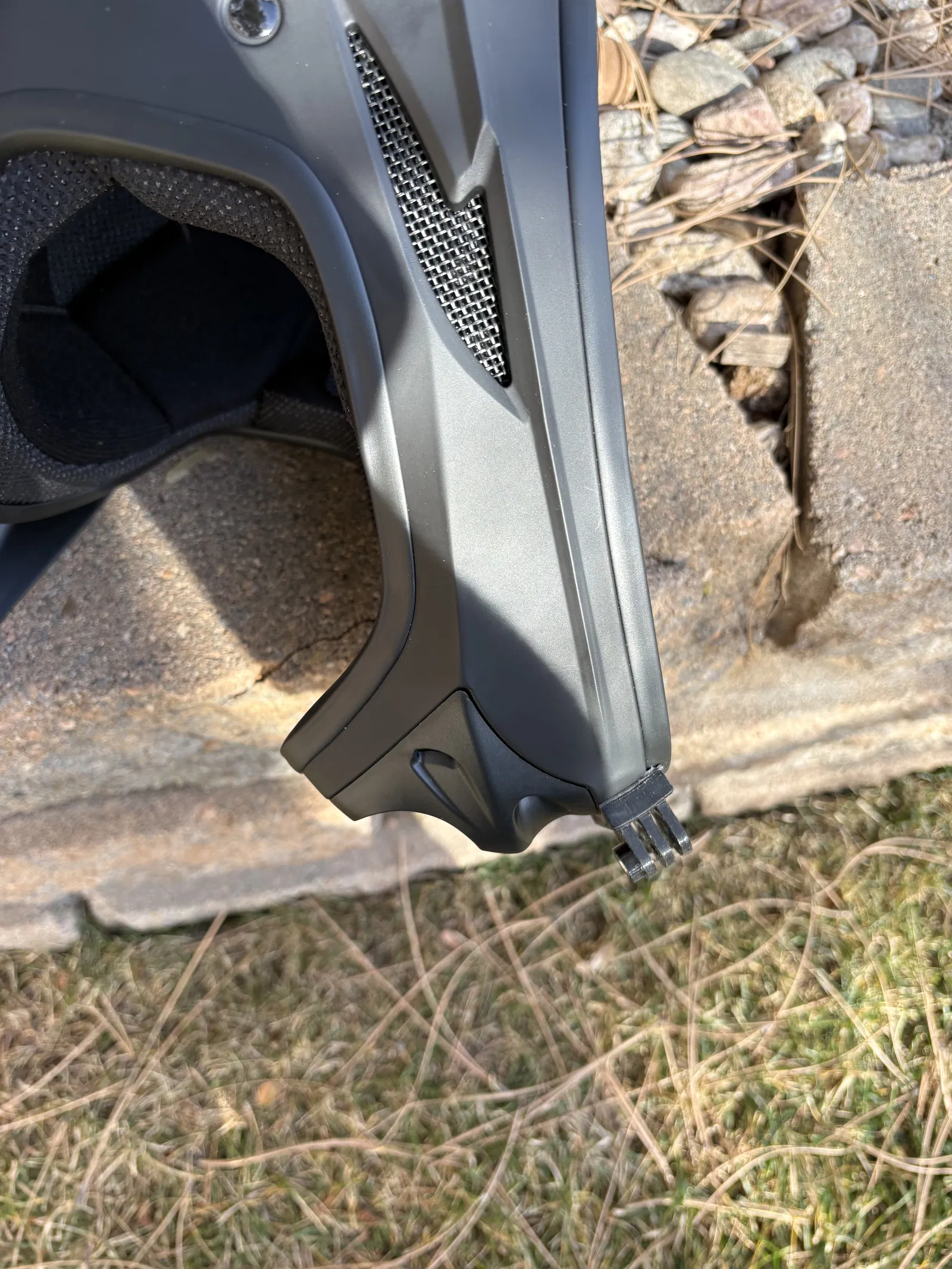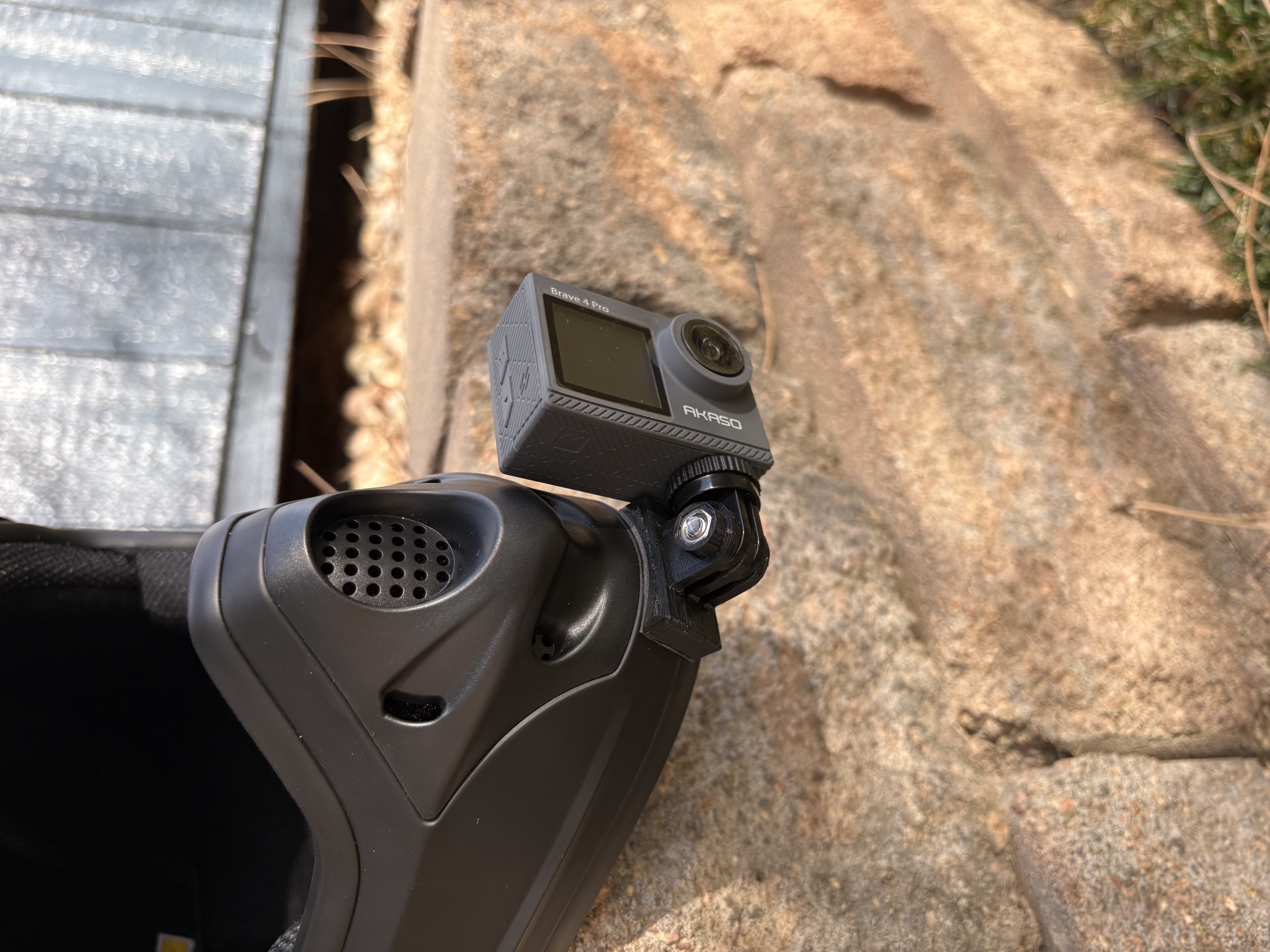 Mẫu ngàm gắn GoPro ở cằm dành cho nón bảo hiểm sevenIDP (7IDP) M1 và các nón tương tự. Có thể cần hơ nóng và ép lên nón để ôm đúng đường cong; ngạnh 3mm, khe 3mm. Dán bằng băng keo 3M.