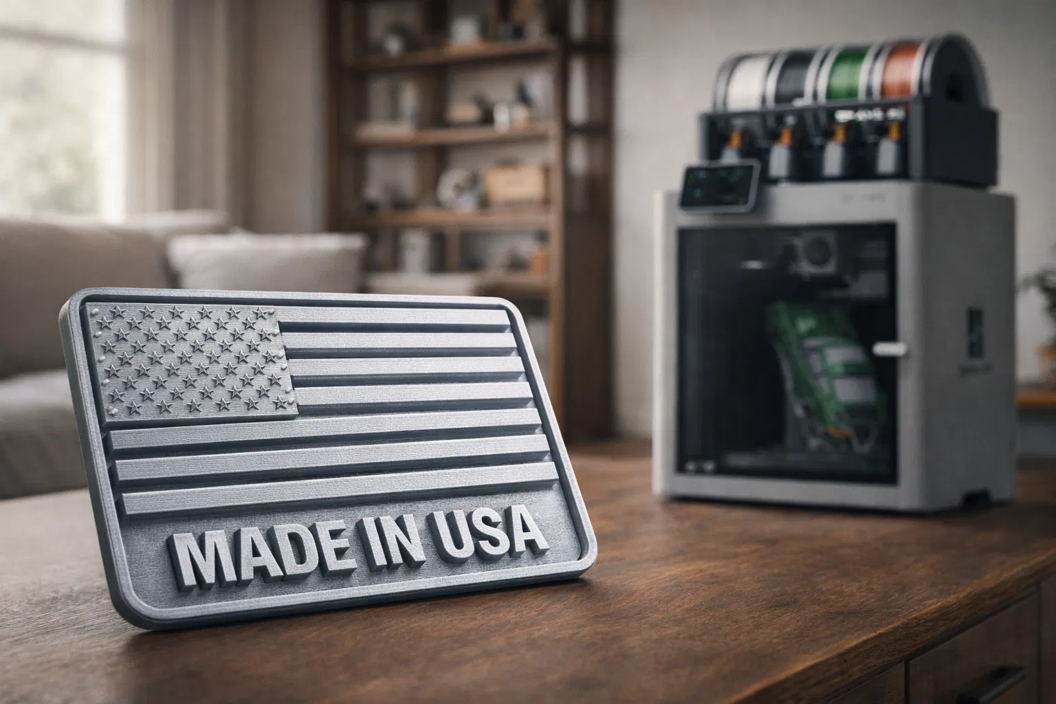 Logo “Made In USA” dùng cho các mẫu bạn bán vì được làm tại Mỹ. Lưu ý: mẫu này cần in gắn lên một bề mặt/vật khác, nếu in rời thì các phần bên trong có thể rơi ra.