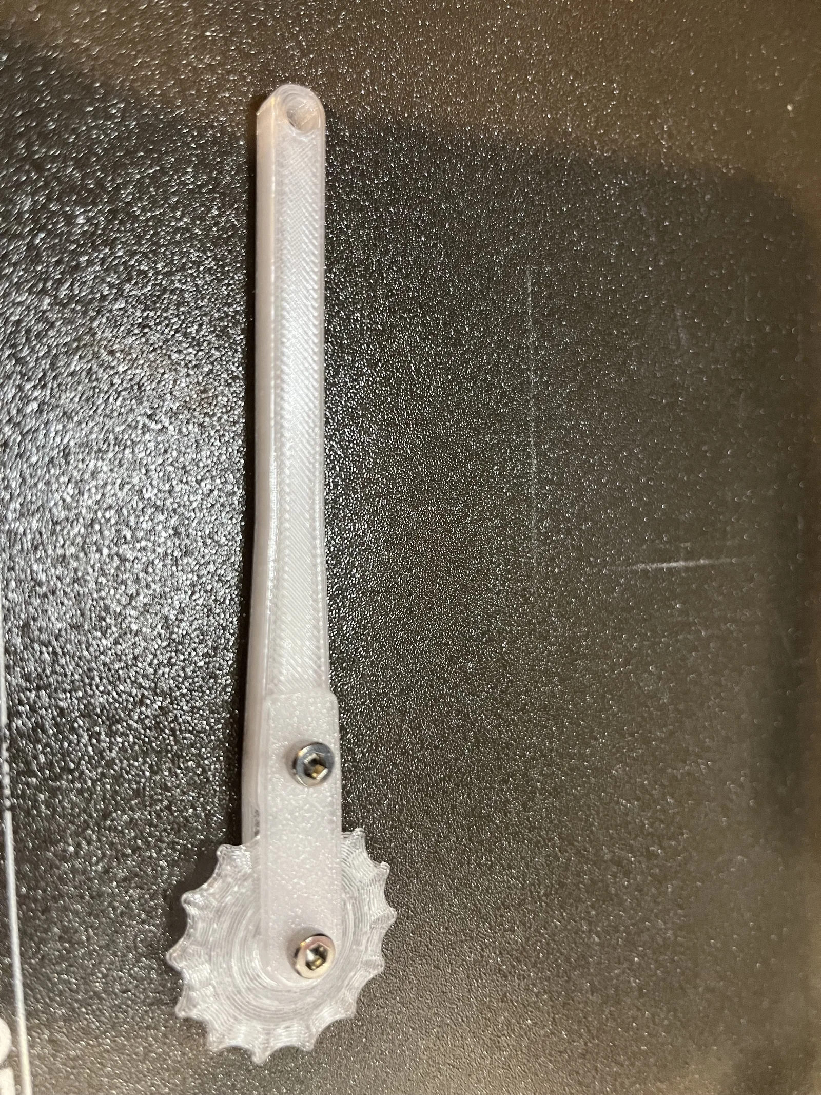 Bản remix đã chỉnh sửa từ Cardboard Creaser để thay được bánh xe (wheel). Khuyến nghị in PETG; wheel nên in layer height 0.3 mm, tăng infill/perimeters cho đặc. Lắp bằng 2 vít M3x8 kèm hex nut, nhớ in supports cho handle.