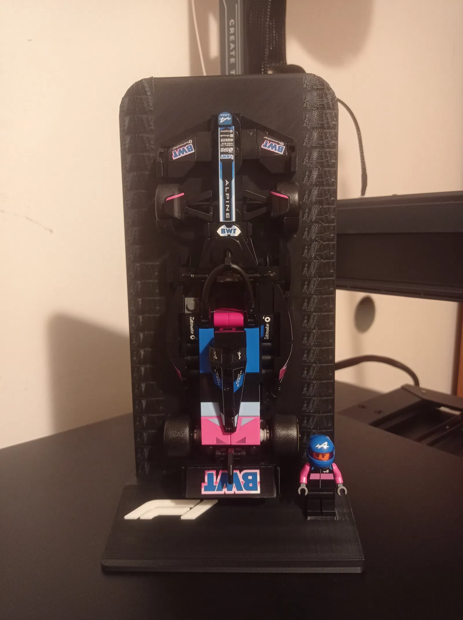 Đế trưng bày cho LEGO Speed Champions Formula 1, kèm đường đua (có hoặc không có curb) và đế có logo F1; cũng có phiên bản đế cho minifig LEGO. In PLA, file STL.