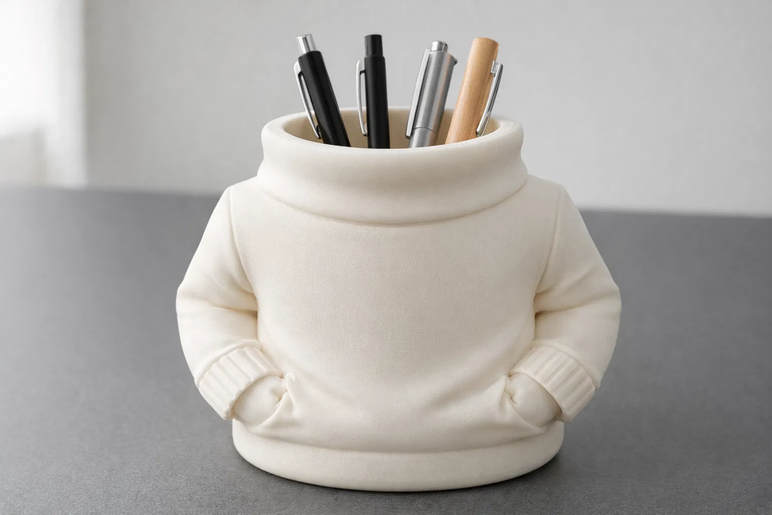 Mang lại cảm giác ấm áp và có “cá tính” cho góc làm việc với Sweater Man Pen Holder – một mẫu desk organizer 3D printable kiểu dễ thương, tối giản, kết hợp giữa tính tiện dụng và phong cách decor hiện đại.