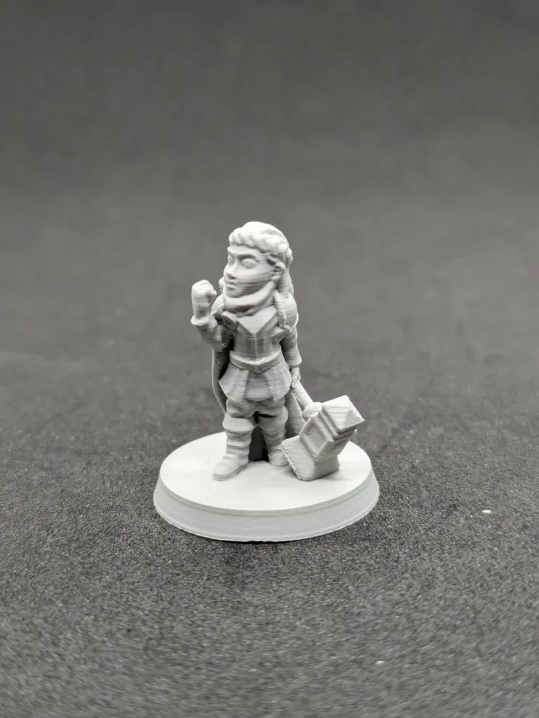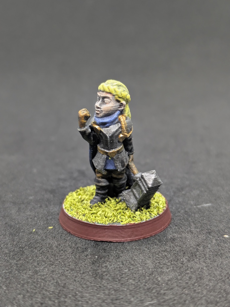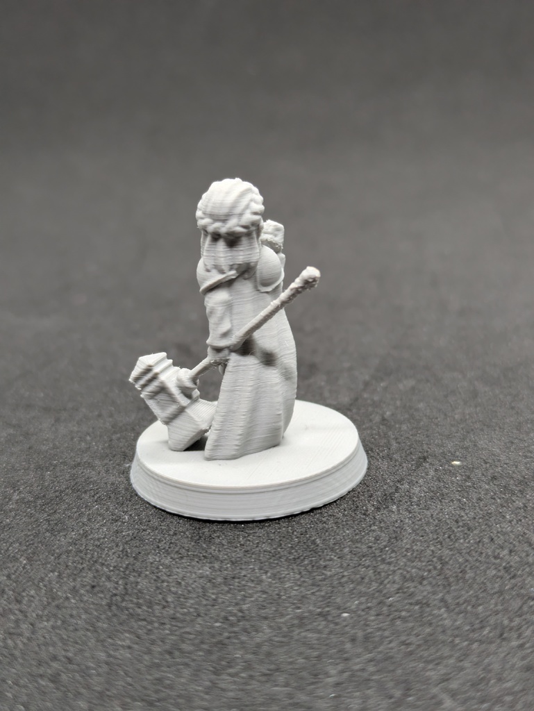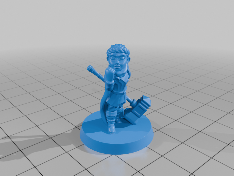 Nữ paladin halfling tỉ lệ 28mm, cầm một cây búa lớn hai tay. Mẫu được thiết kế để in không cần supports trên máy in FDM. Mức độ chi tiết như trong ảnh đạt được khi dùng nozzle 0,2 và chiều cao lớp 0,08 mm.