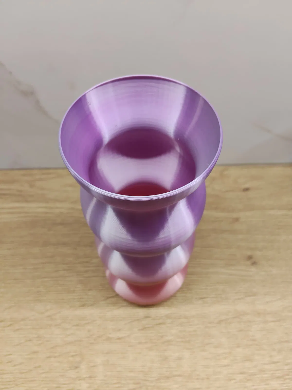Mẫu bình hoa cao với họa tiết gợn sóng thanh lịch và hiệu ứng chuyển sắc tím (gradient) nổi bật. Phù hợp để trang trí nhà cửa, cắm hoa, làm điểm nhấn tinh tế cho mọi không gian sống.